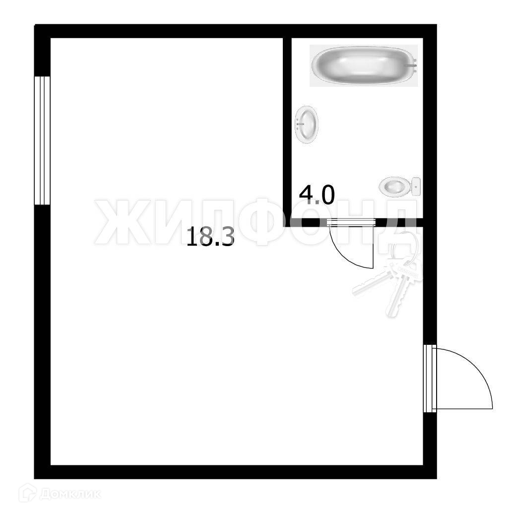 Общая площадь 22.3 м2