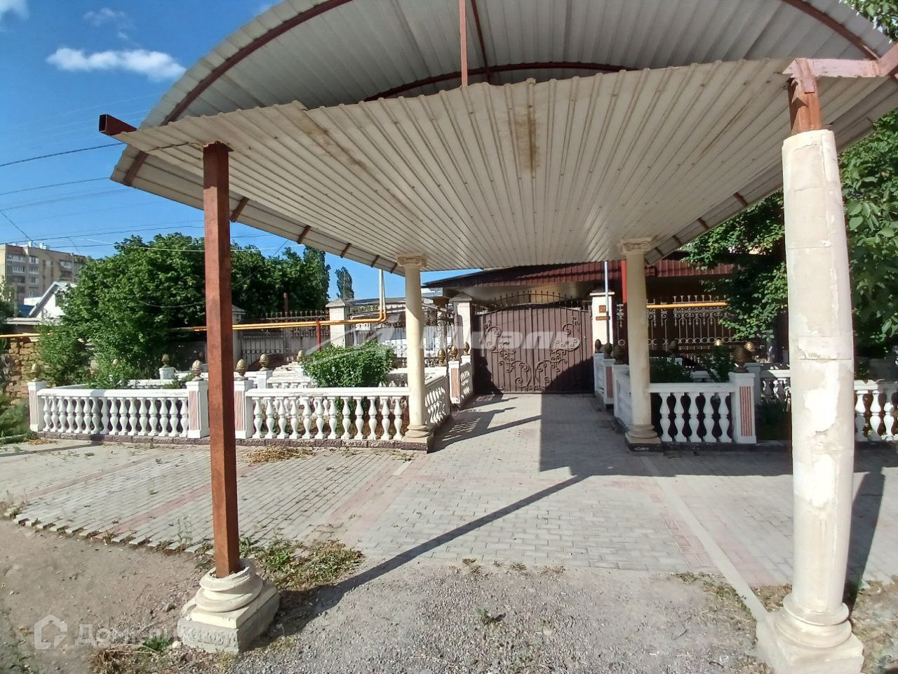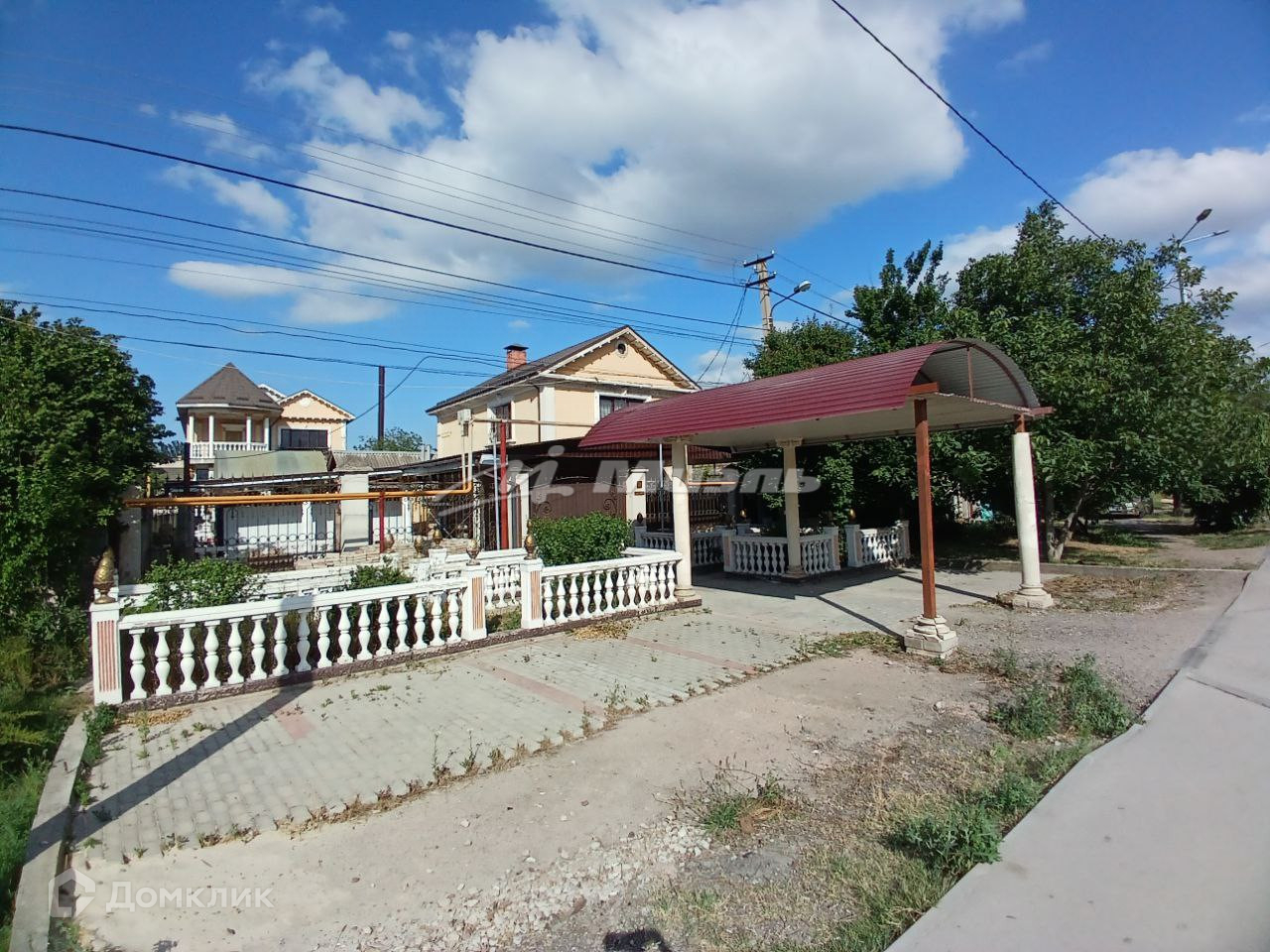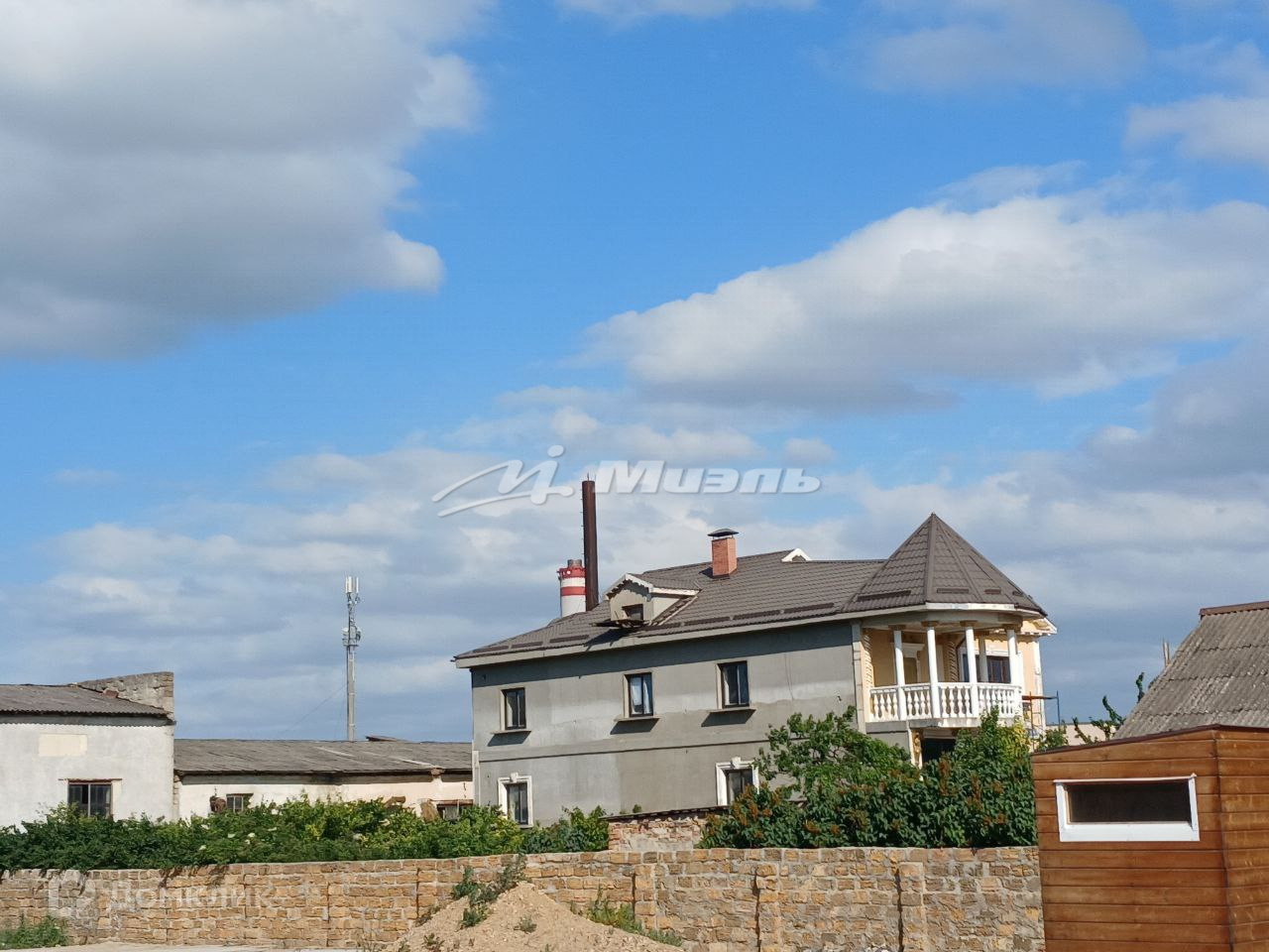 На участке есть хоз. постройки (санузел, вольер для собаки, курятник, беседка), под навесом бассейн и фонтан.