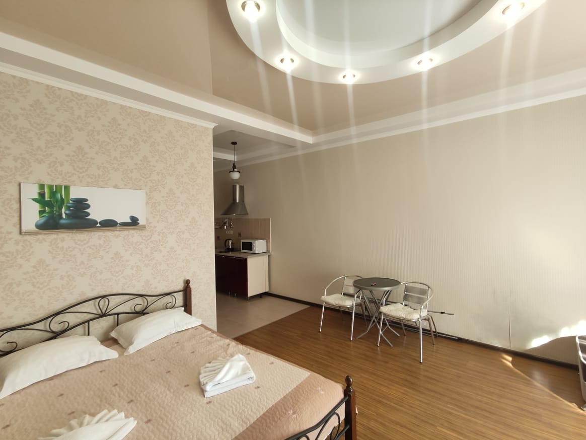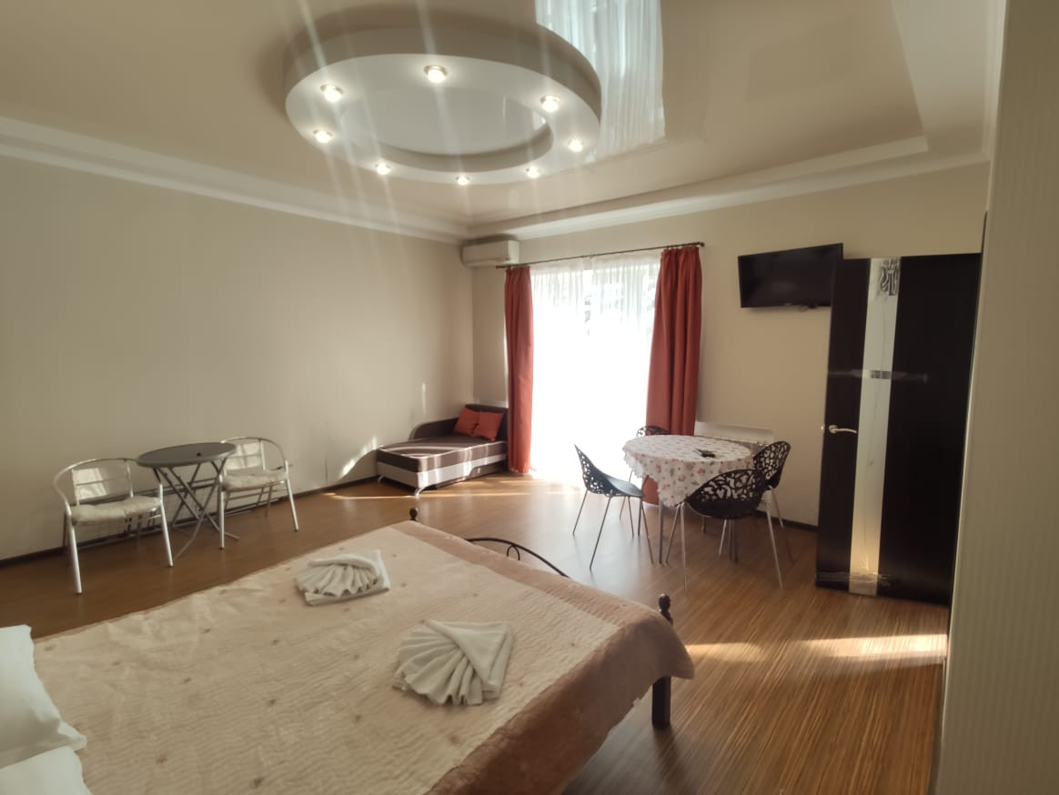 Во всех номерах установлены ТВ и кондиционеры, кухня оснащена СВЧ, холодильником, плитой, чайником, а также кухонными принадлежностями. В каждом номере в санузле установлен душ и биде.