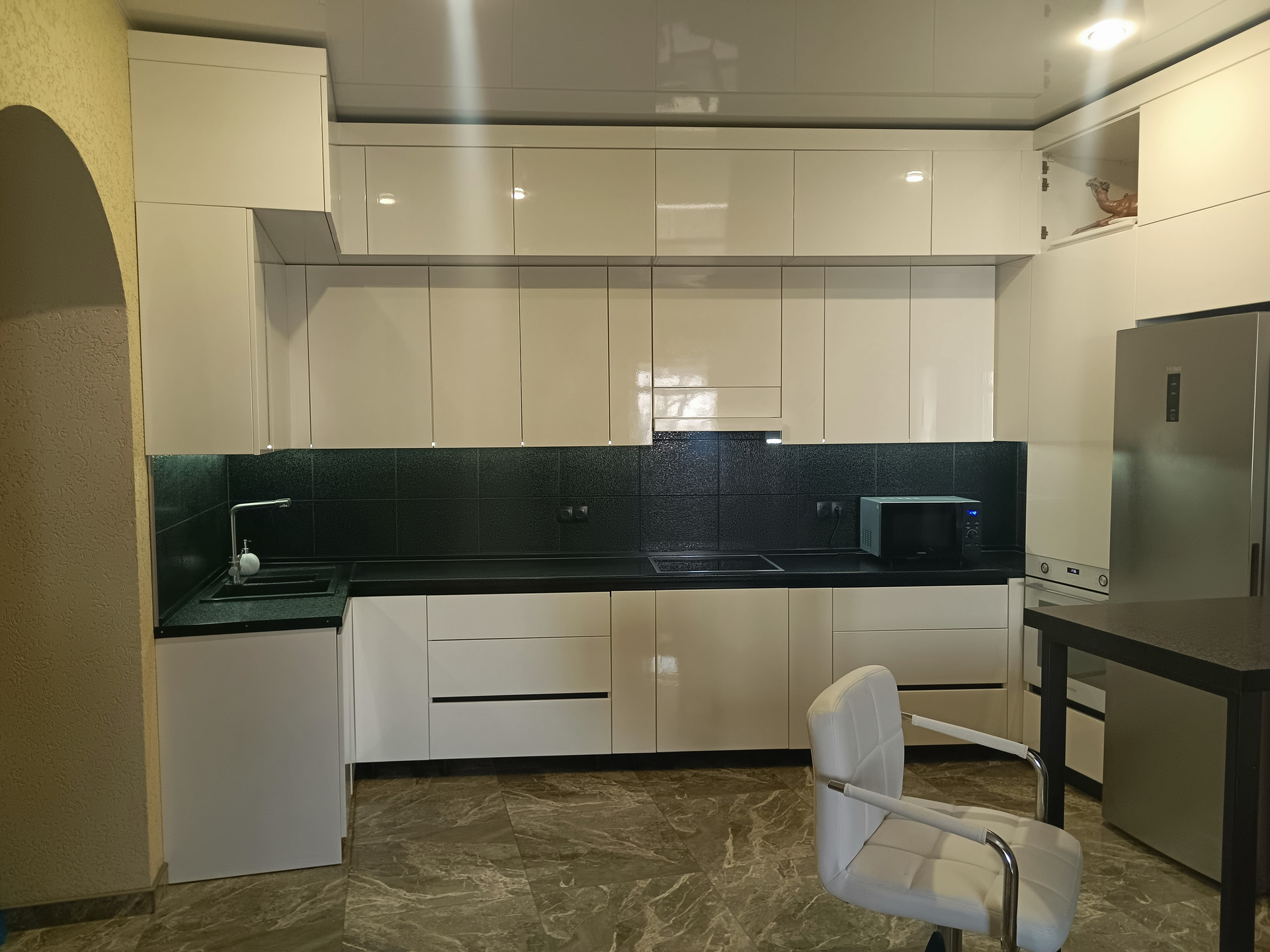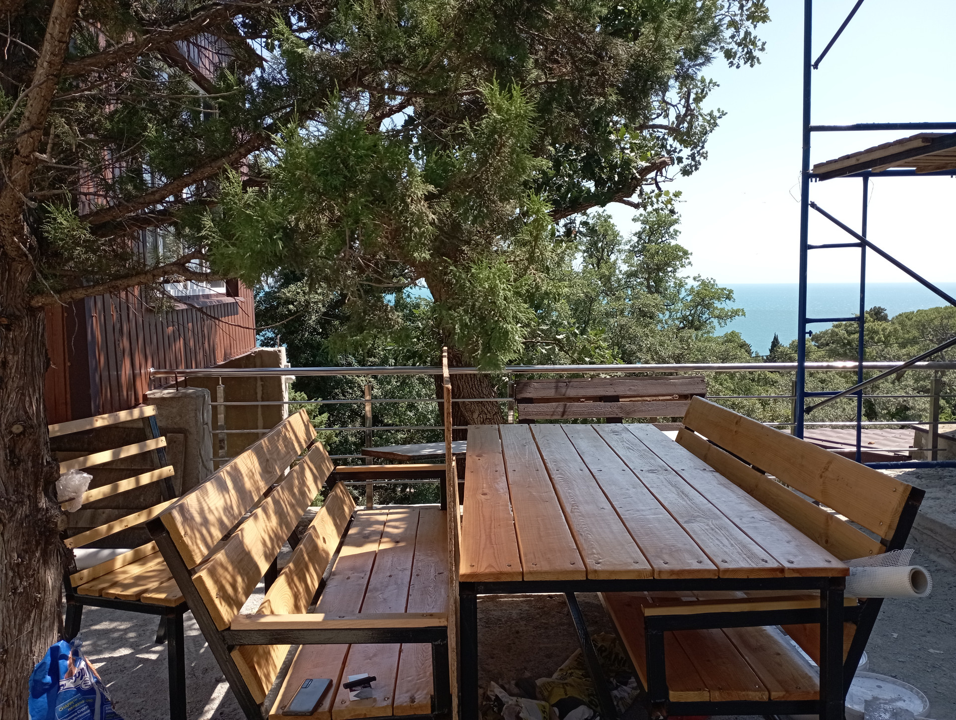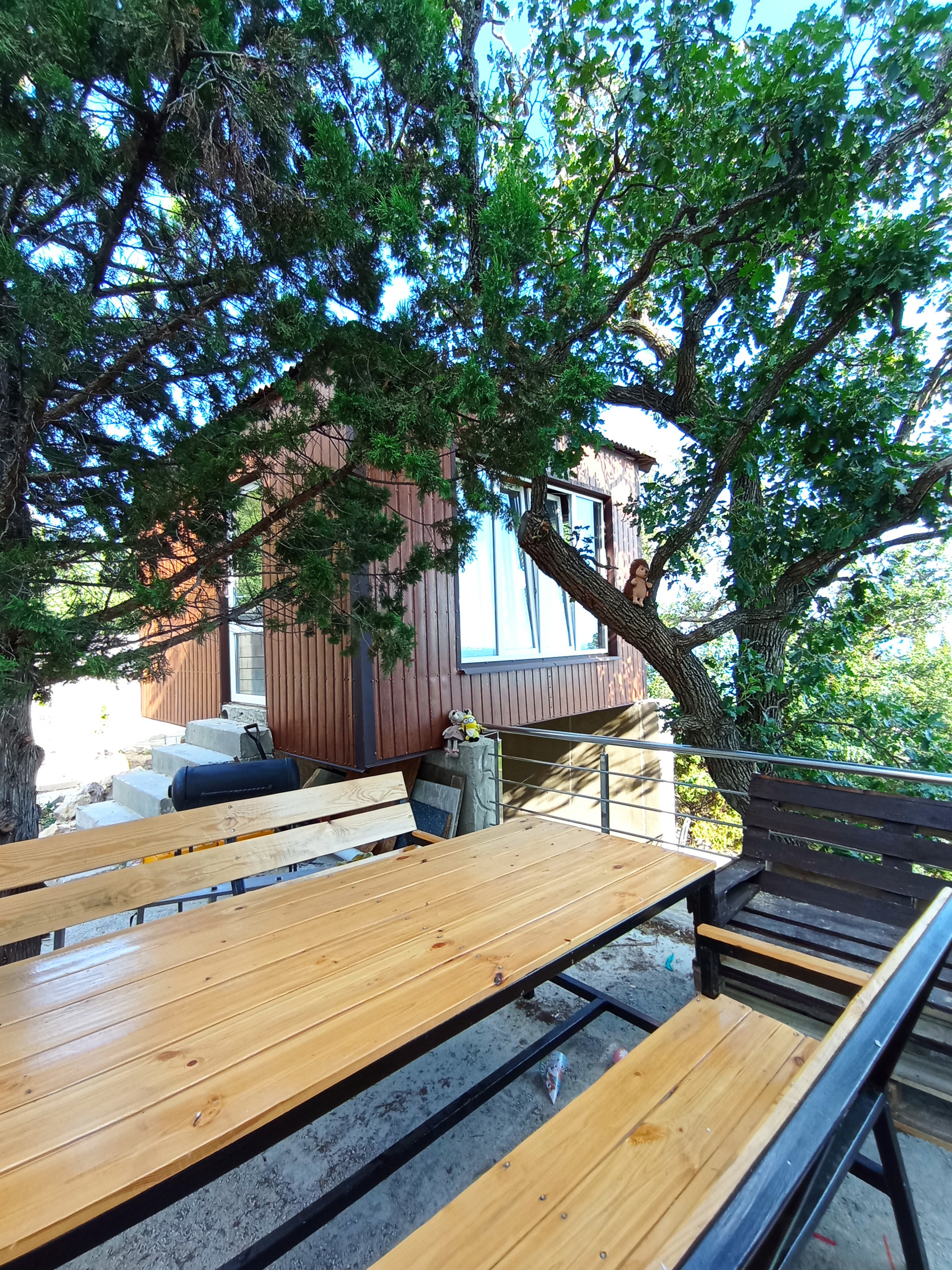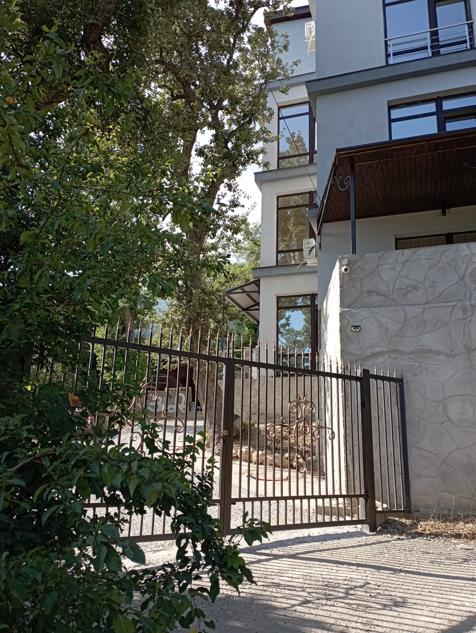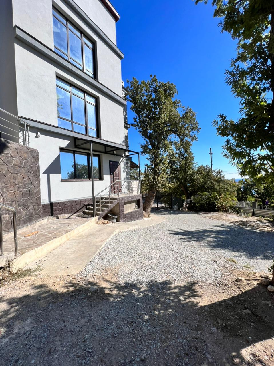 На задней территории расположена отдельная крытая Беседка с мангальной и кухонной зоной внутри, панорамная площадка с видом на море для трапезы на открытом воздухе и вечерних посиделок с хорошей компанией, мини-сад из плодовых деревьев (персик, абрикос, груша, виноград, черешня, слива, яблоко, малина, смородина)