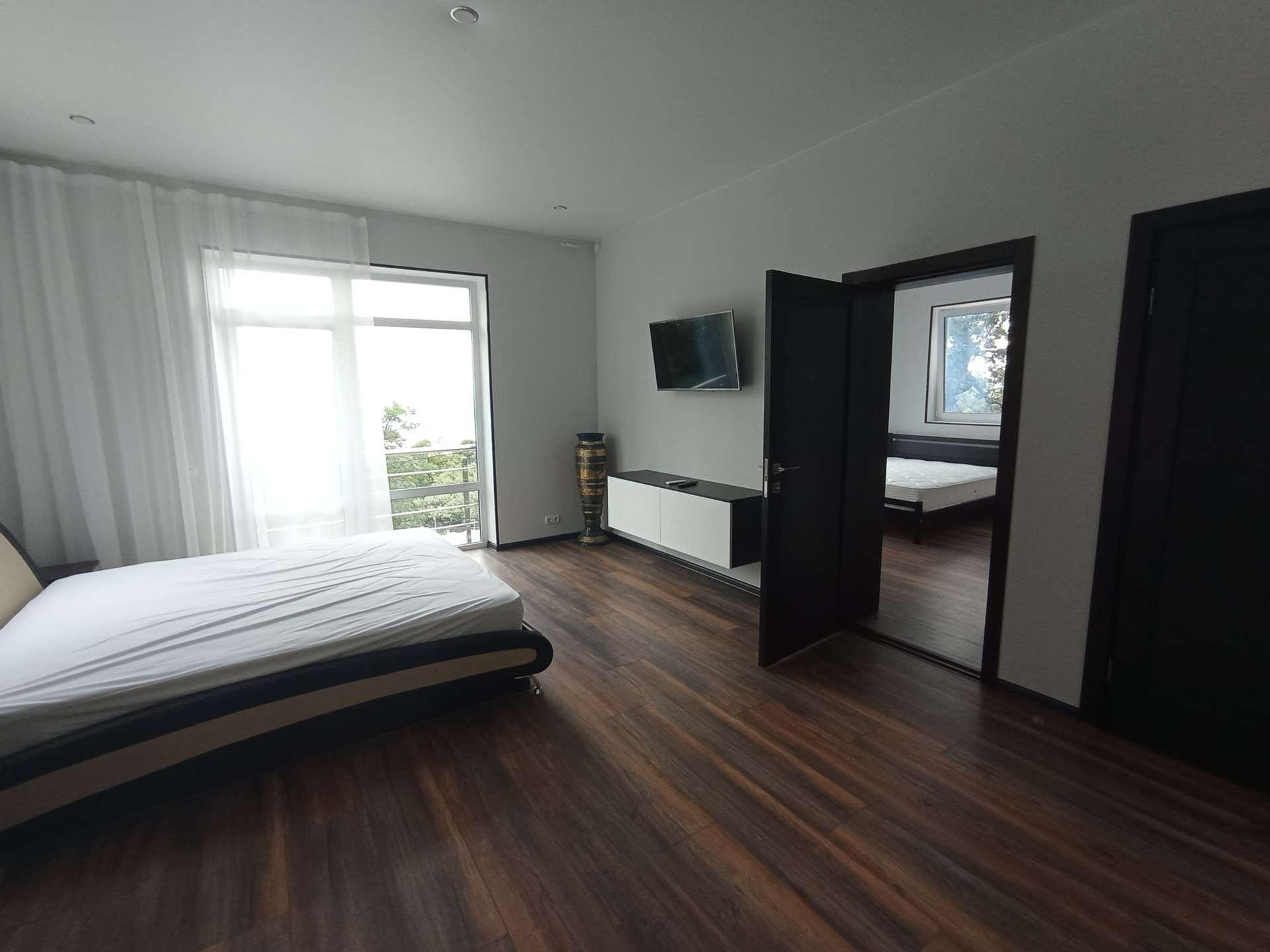 Из спален гостевого Дома открываются шикарнейшие виды на море с одной стороны и горы Ай-Петри с другой. Каждая спальная укомплектована отдельными душевыми комнатами, двухспальными евро-кроватями, прикроватными тумбами, шифоньерами, передвижными столиками, кондиционерами, телевизорами и Wi Fi интернетом.