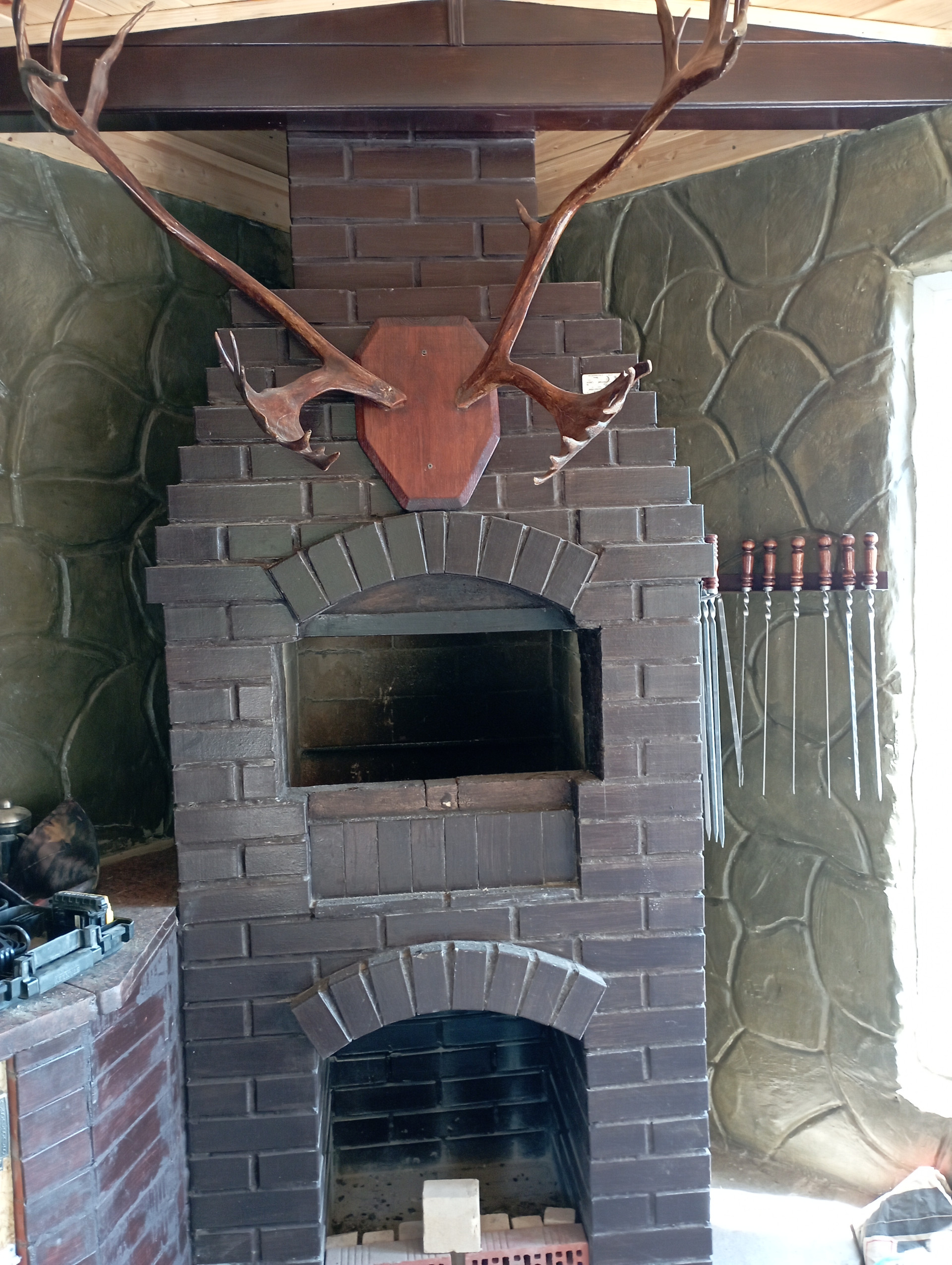 На передней территории расположена деревянная беседка с мангальной зоной, парковочные места для авто.