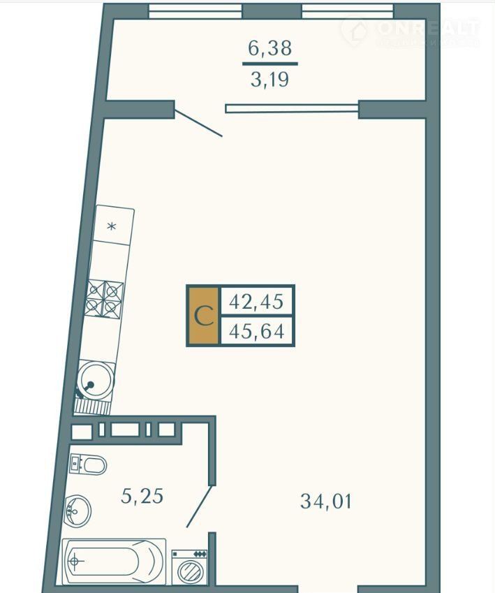 Общая площадь 45.6 м2