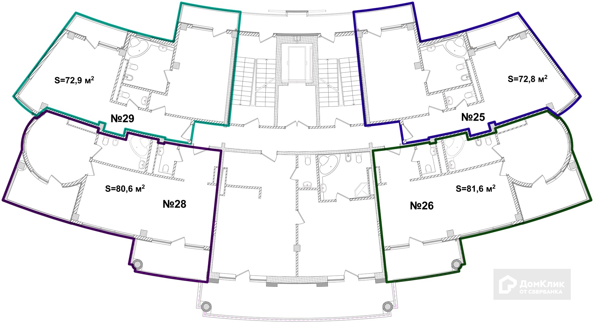 Апартаменты с видом на море общей площадью 117,4 кв.м. свободной планировки 8 этаж 10 этажного здания.