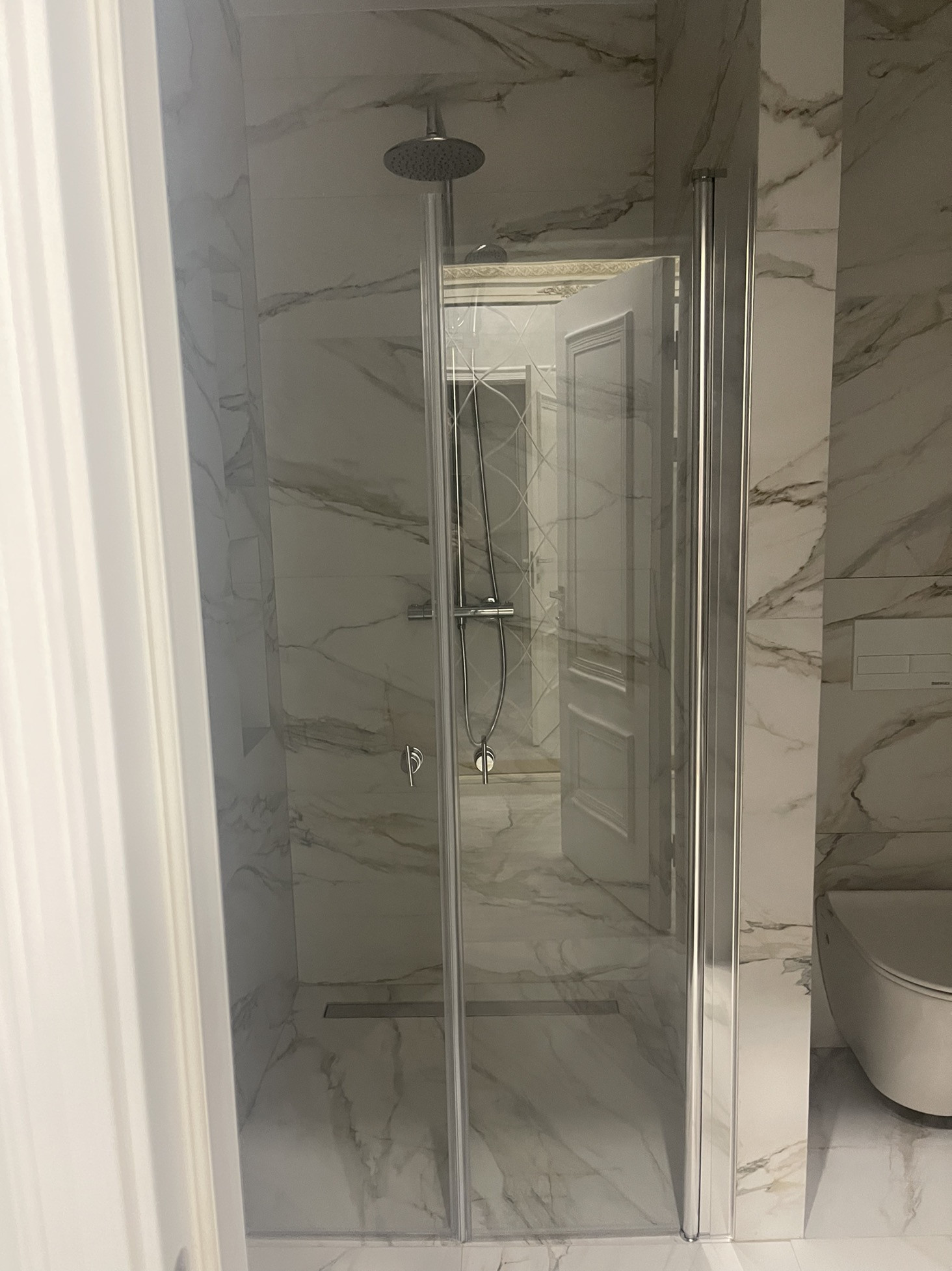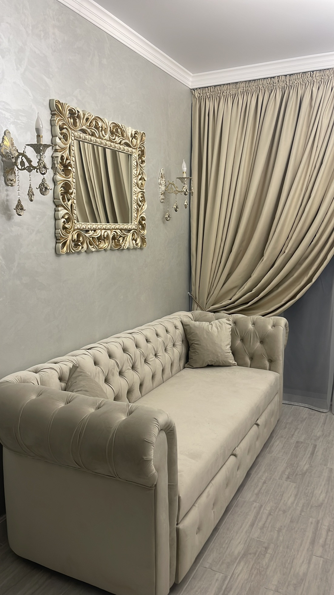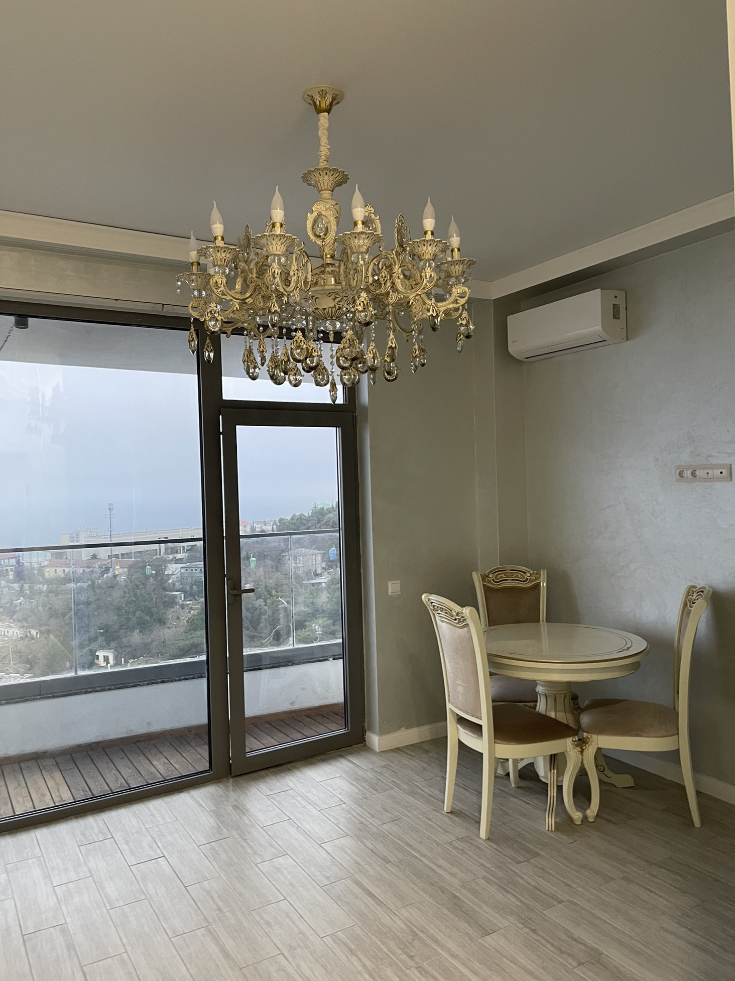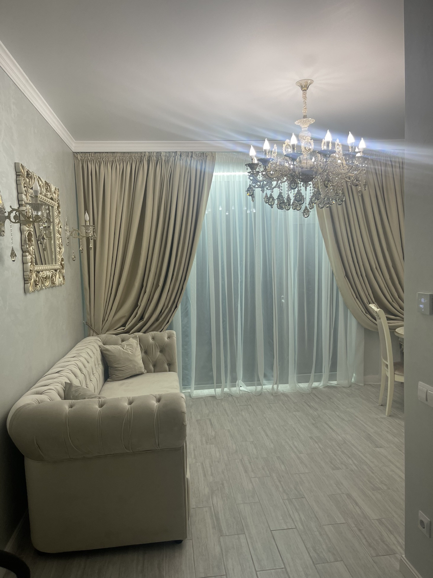 По всему периметру квартиры керамогранитные полы, установлены электрические тёплые полы умный дом.