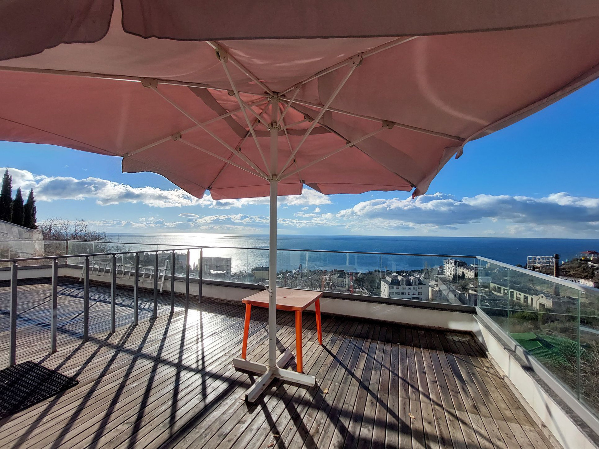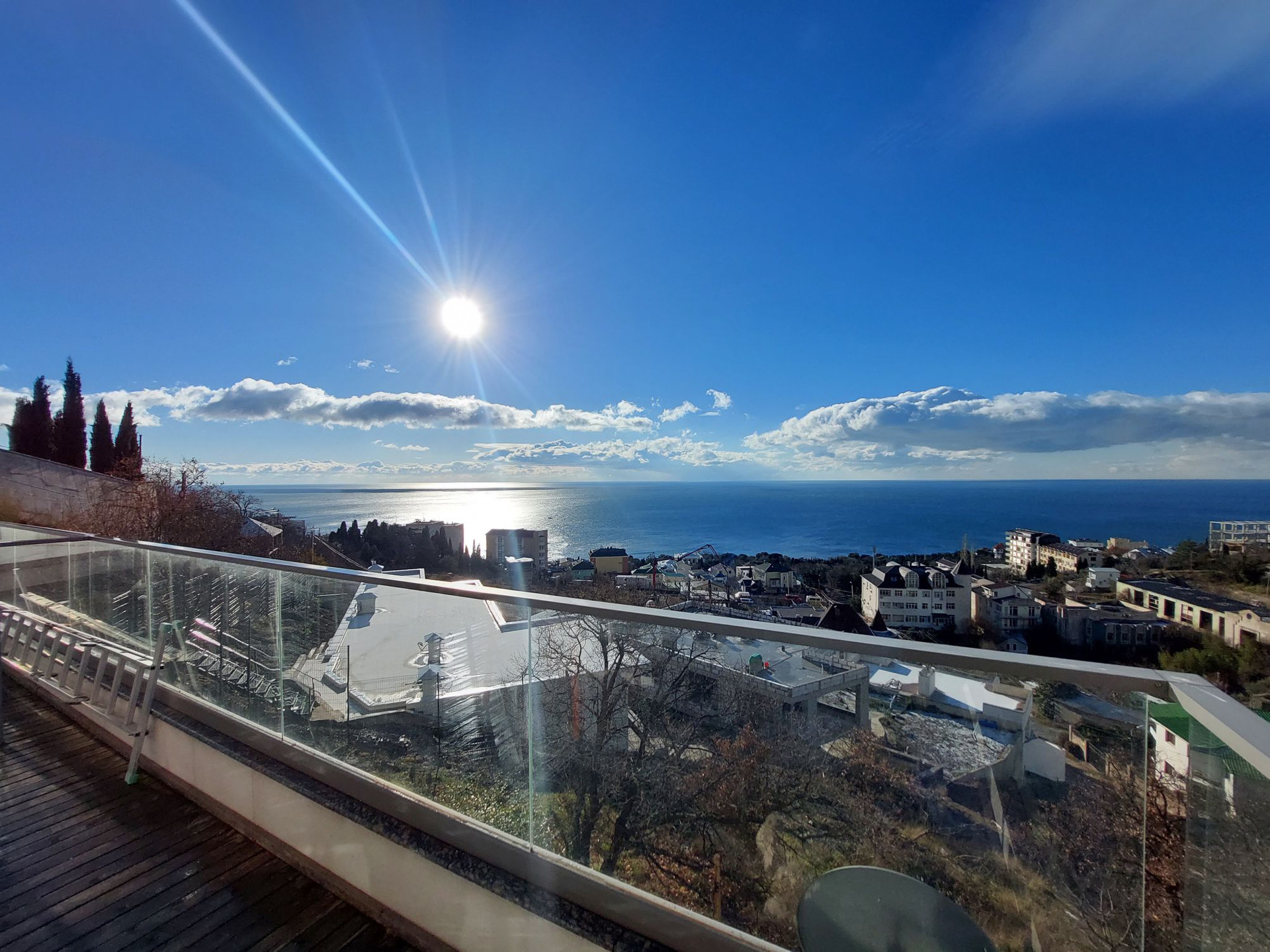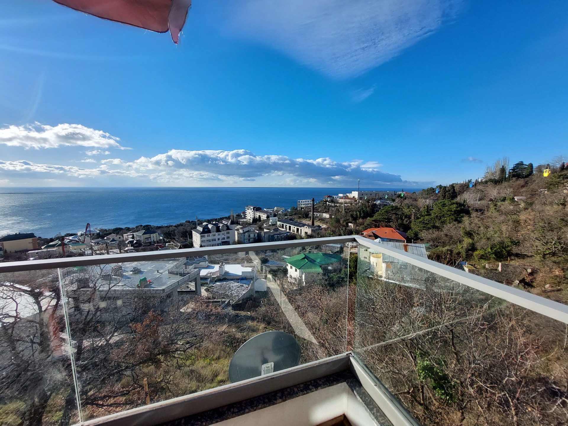 Продается видовая 2-х комнатная квартира в клубном доме ЖК "Коста Мисхор", расположенном в пригороде Ялты (пгт. Мисхор), всего в 570 метрах от пляжа. Общая площадь с учетом террасы 79 м2 (53.6 м2 внутренняя + 25.4 м2 открытая терраса). Планировка: спальня-кабинет с выходом на просторную видовую террасу, просторная кухня-столовая, совмещенный санузел (душевая кабина), прихожая. Квартира расположена на 2 этаже 6-эт дома. Остекление панорамные энергосберегающие оконные системы. В квартире всегда много света и воздуха. Из окон, а также с южной открытой террасы открывается панорамный вид на море и зелень Мисхорского парка. В квартире сделан хороший ремонт: качественная мебель, кач. межкомнатные двери, зонированное освещение, современная сантехника. В квартире установлен электробойлер Ariston, вместительная стиральная машина, холодильник BOSH, два кондиционера, посудомоечная машина. По всей квартире смонтирован электрический теплый пол.
