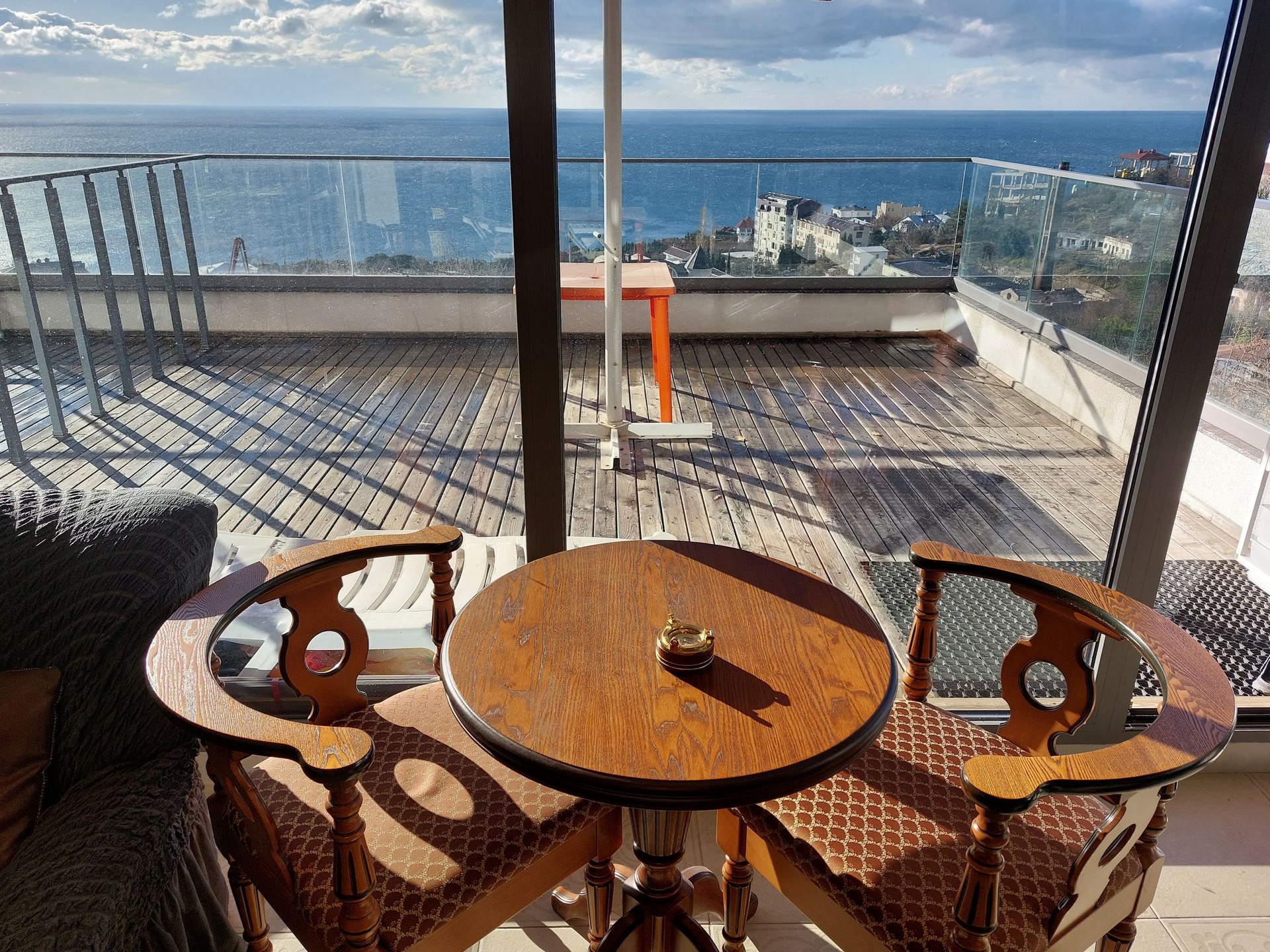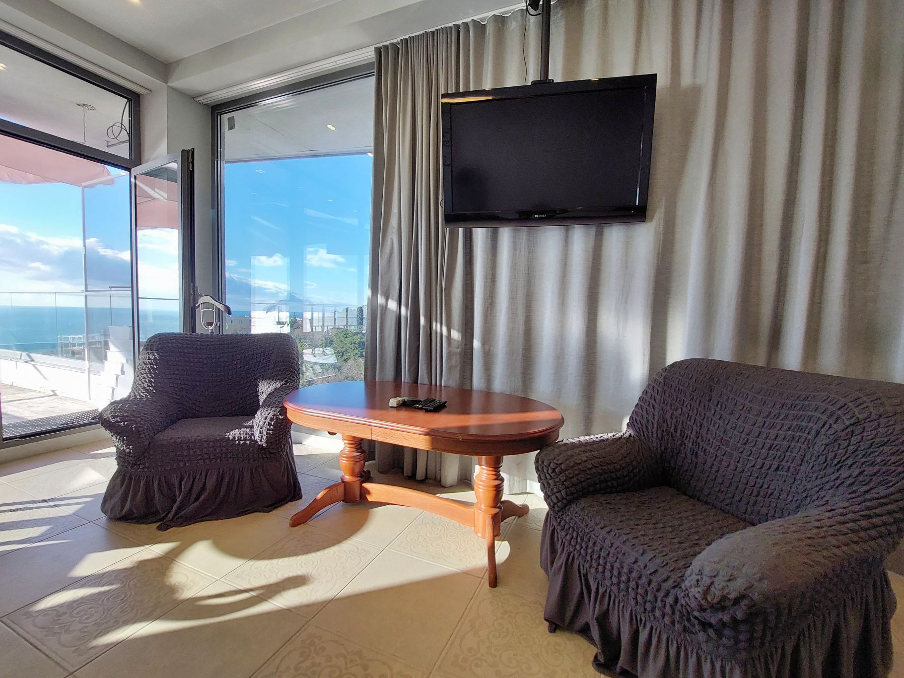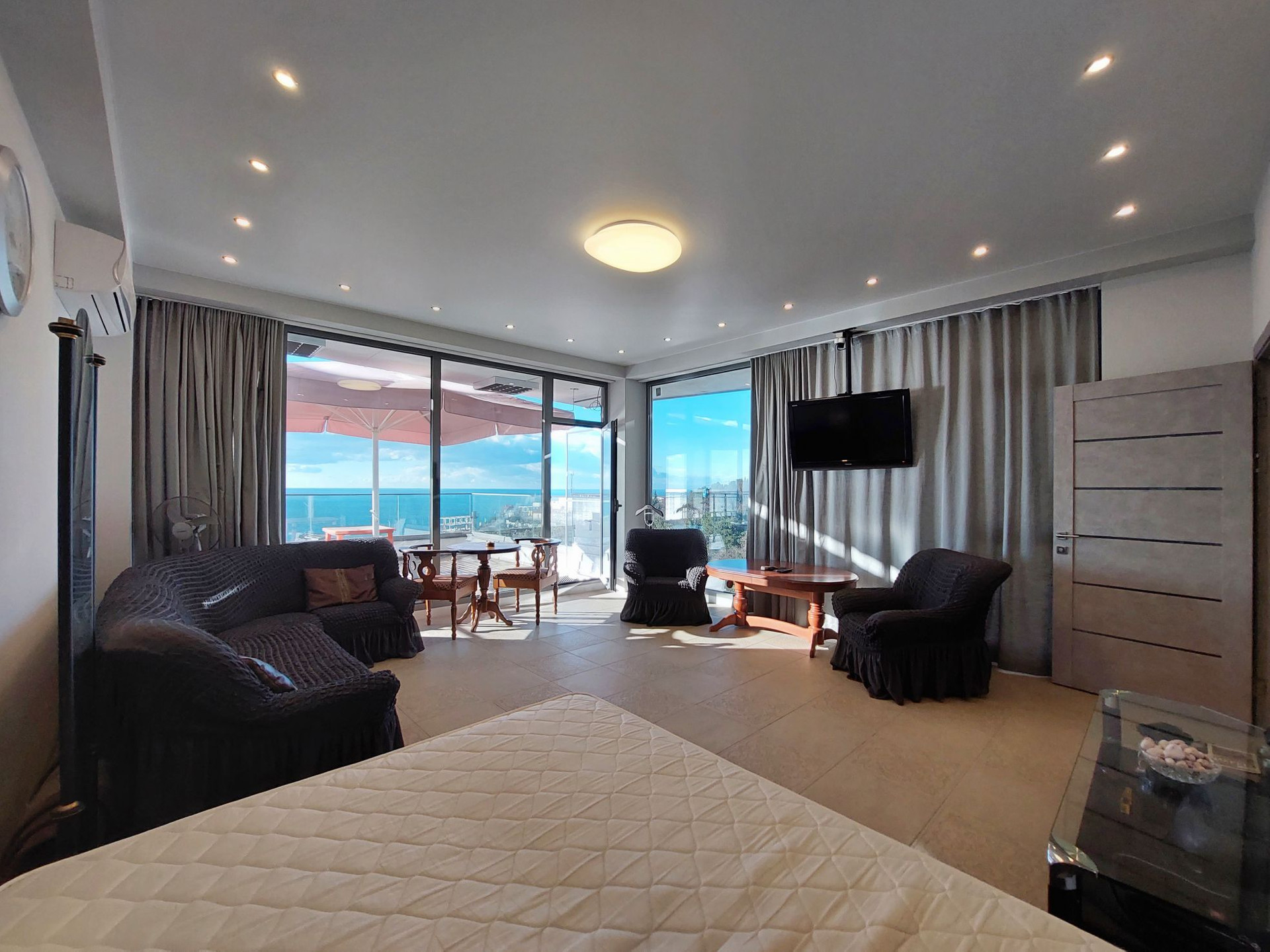 Продается видовая 2-х комнатная квартира в клубном доме ЖК "Коста Мисхор", расположенном в пригороде Ялты (пгт. Мисхор), всего в 570 метрах от пляжа. Общая площадь с учетом террасы 79 м2 (53.6 м2 внутренняя + 25.4 м2 открытая терраса). Планировка: спальня-кабинет с выходом на просторную видовую террасу, просторная кухня-столовая, совмещенный санузел (душевая кабина), прихожая. Квартира расположена на 2 этаже 6-эт дома. Остекление панорамные энергосберегающие оконные системы. В квартире всегда много света и воздуха. Из окон, а также с южной открытой террасы открывается панорамный вид на море и зелень Мисхорского парка. В квартире сделан хороший ремонт: качественная мебель, кач. межкомнатные двери, зонированное освещение, современная сантехника. В квартире установлен электробойлер Ariston, вместительная стиральная машина, холодильник BOSH, два кондиционера, посудомоечная машина. По всей квартире смонтирован электрический теплый пол.