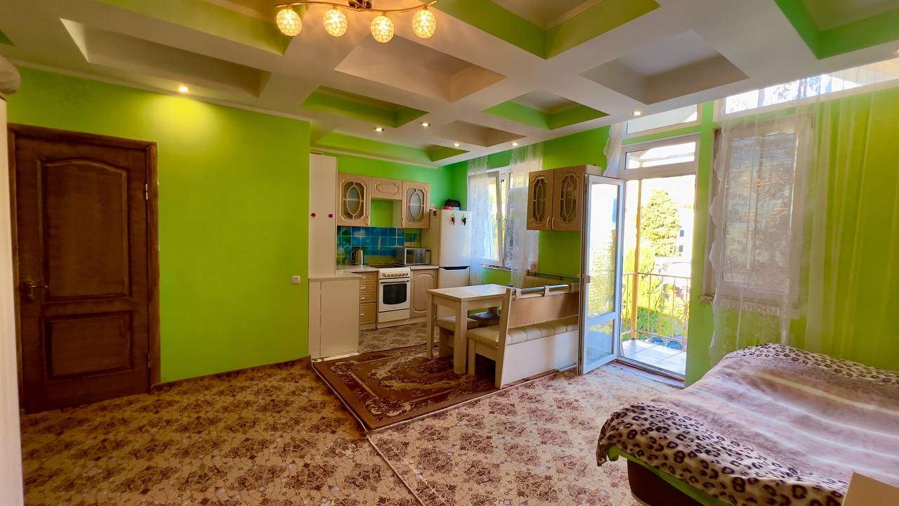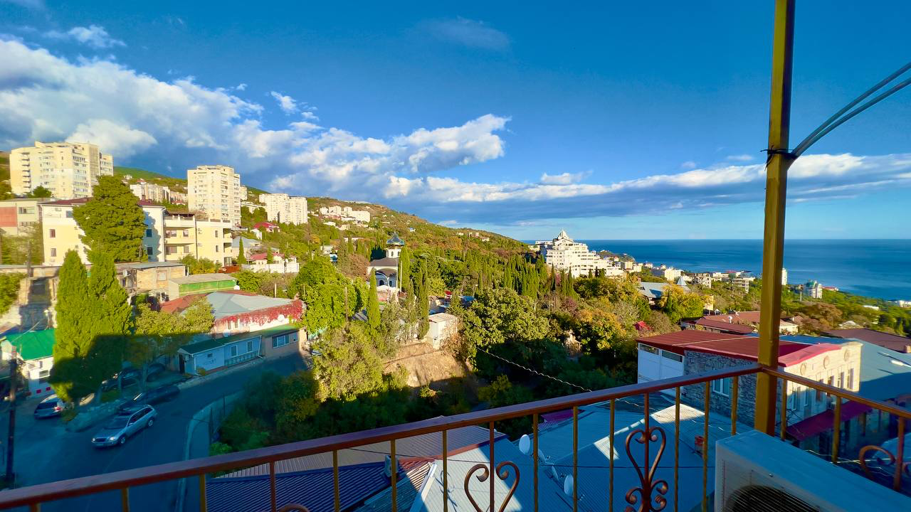 Продается уютная и просторная квартира с великолепным видом на море, побережье и плато Ай-Петри в центре пгт Кореиз.