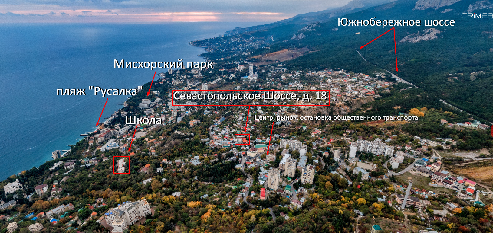 Рядом много достопримечательностей: Юсуповский Дворец, Воронцовский Дворец,  Дворец Княгини Паниной, Дворцово-парковый комплекс Дюльбер, Замок Ласточкино гнездо, канатная дорога Мисхор-АйПетри. Реликтовые парки и чистейшие пляжи в шаговой доступности.