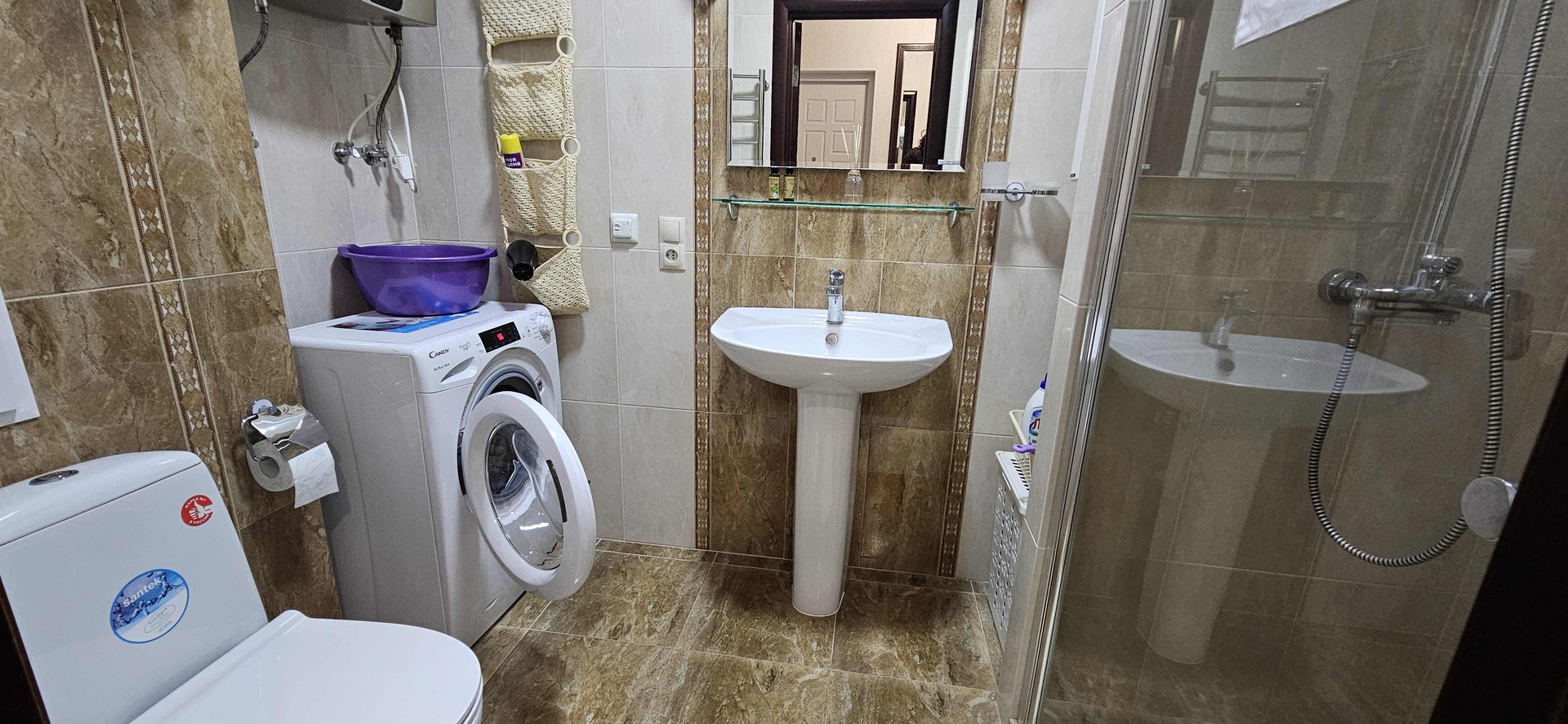 В квартиру заведены все коммуникации: бесперебойный водопровод, электричество, канализация, принудительная вентиляция. Возле дома предусмотрены парковочные места.