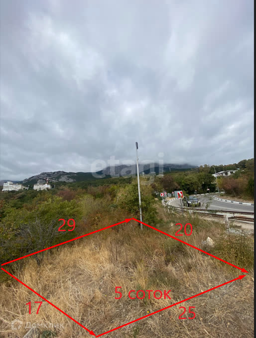 Продам участок 5 соток с видом на море и гору Ай-Петри, в пгт. Кориез, Кореизское шоссе. Участок имеет небольшой уклон в сторону моря.