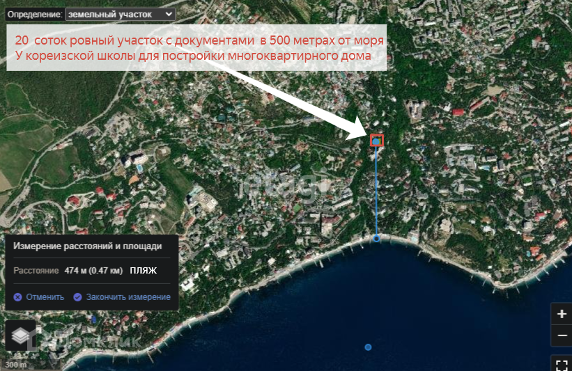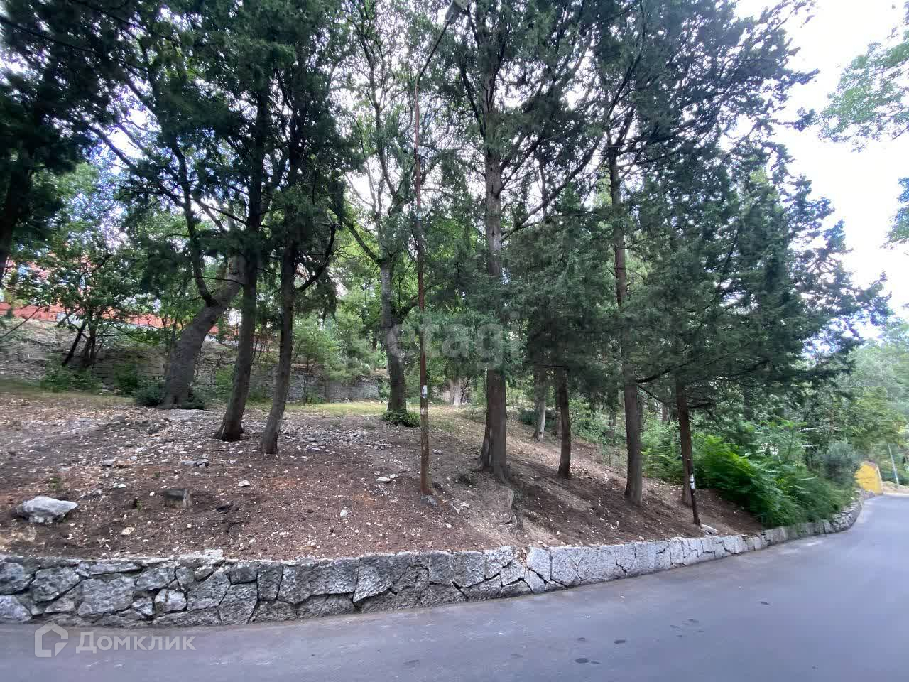 В пяти минутах две остановки общественного транспорта, через дорогу здание кореизской школы, удобная транспортная развязка, за периметром участка красивые краснокнижные деревья.