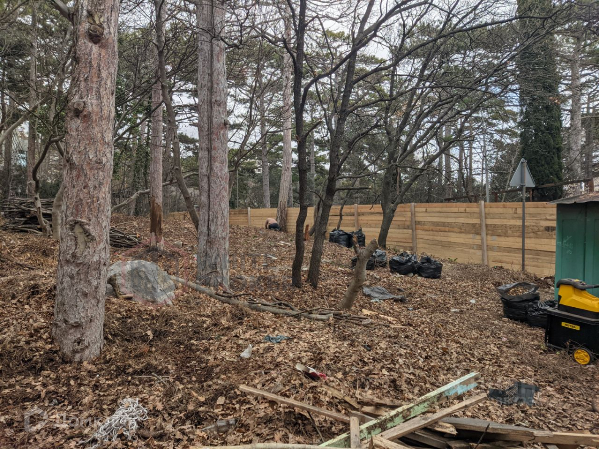 Уникальный участок в Нижнем Мисхоре рядом с санаторием Дюльбер (ЮБК, Ялта)  идеально  ровный  обнесен временным деревянным новым забором , полностью готов к строительству дома, в пяти минутах ходьбы от моря и парковой зоны. На участке растут вековые сосны, есть хорошее пятно застройки, подключено электричество, все коммуникации городские , газ по границе участка.