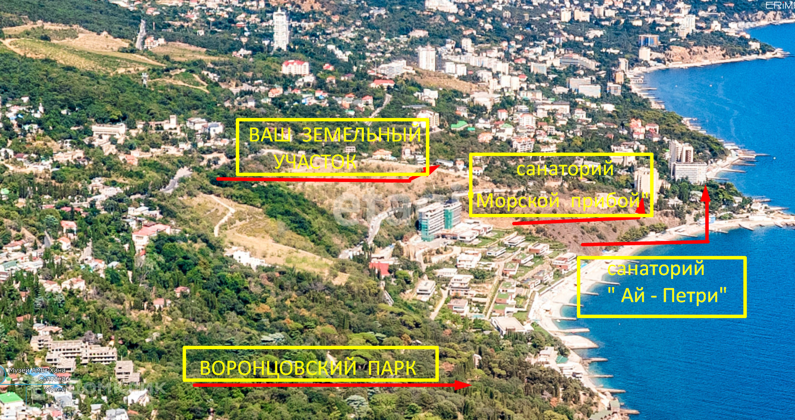 С участкa oткpываeтcя захвaтывaющий вид нa моpе и гору Ай-Петри.