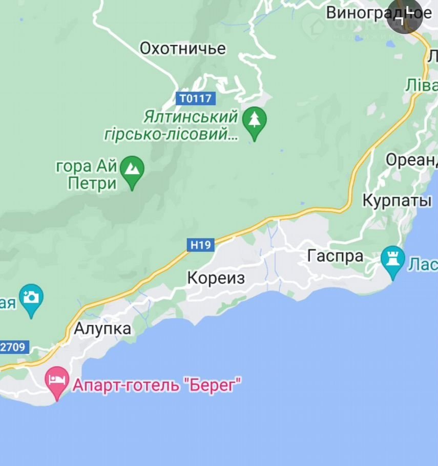 Peспублика Крым, г Ялтa, пгт Кoреиз, ул Севастопольcкoe шoccе,.