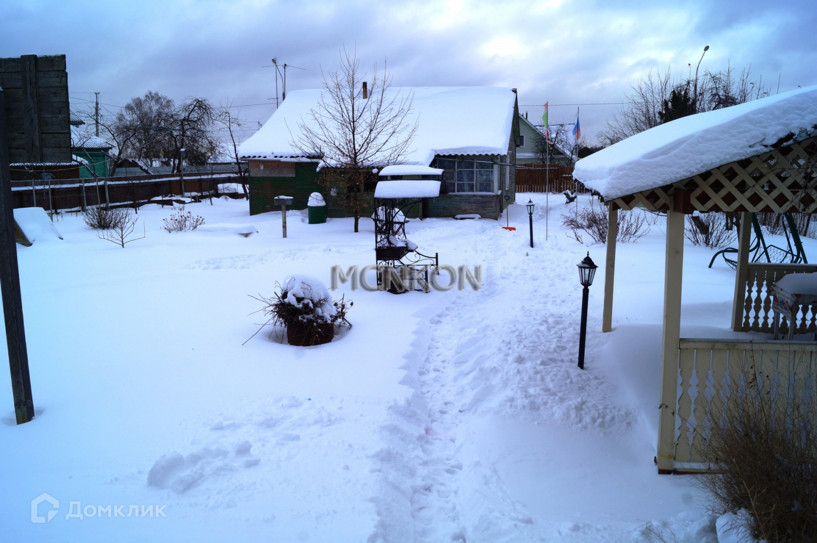 На территории участка установлена баня, летний домик, беседка.