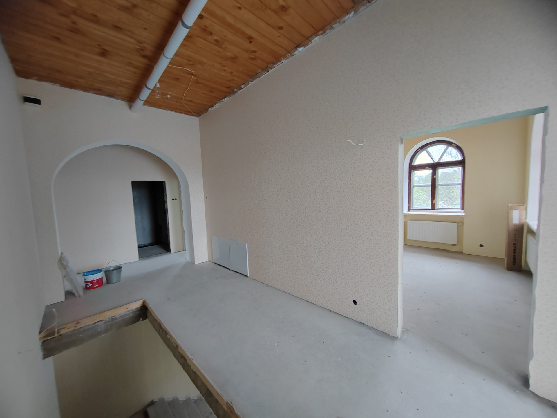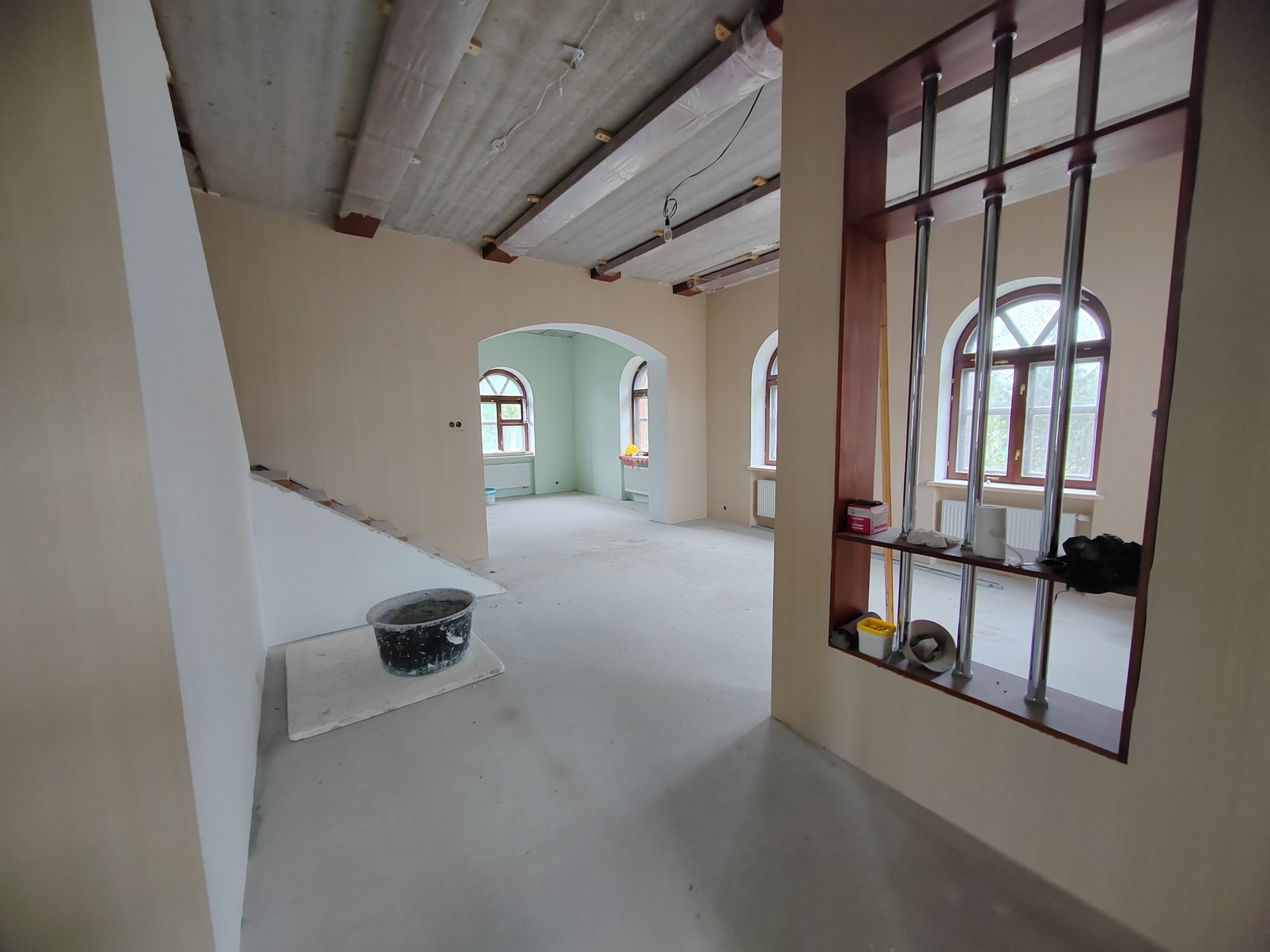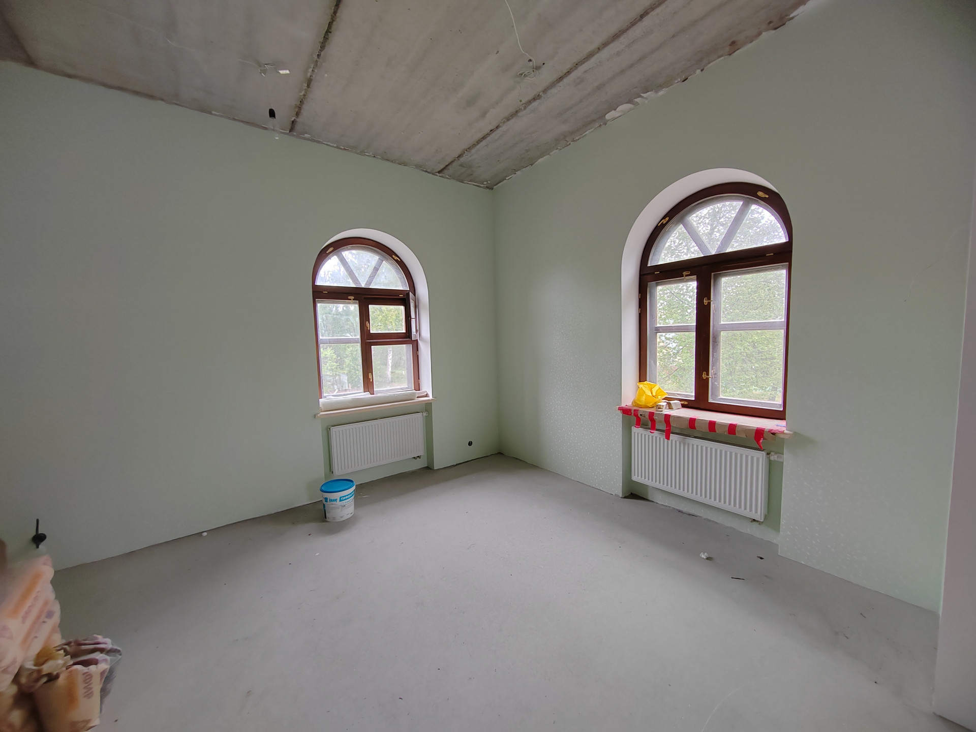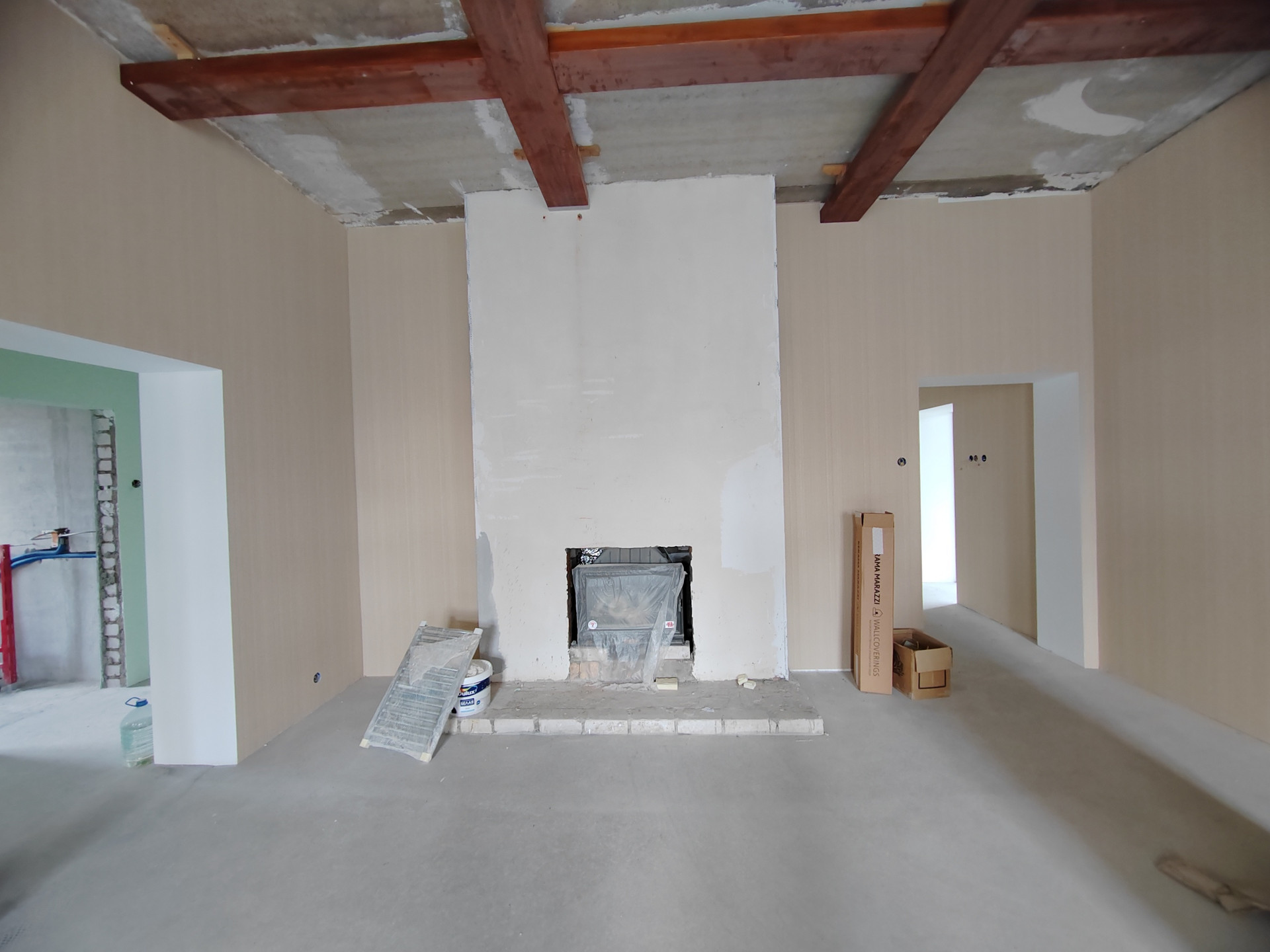 В доме: Все инженерные системы смонтированы, разведены по дому и безупречно функционируют. Система Zont эргономично управляет климатом удалённо в телефонном приложении, позволяя экономить до 70% энергоресурсов на отопление, прекрасный французский дровяной камин, сауна в доме (1-й уровень) автоматические гаражные ворота, выровнены все стены и полы, оклеены обои. Отделка выполнена на 90%.