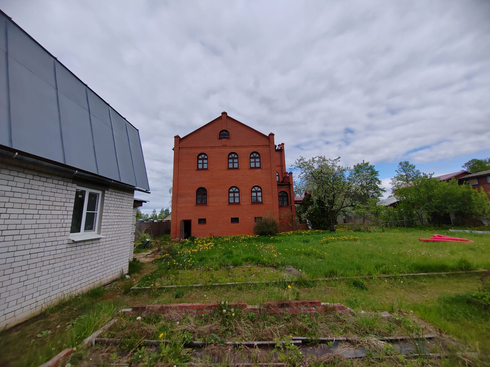 - Основной дом 404,4 м2, кирпич (отделка White Box). Три уровня+чердак - полноценный этаж под крышей 65 м2 (возможно использовать под библиотеку, кинозал и т.д.).