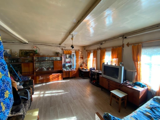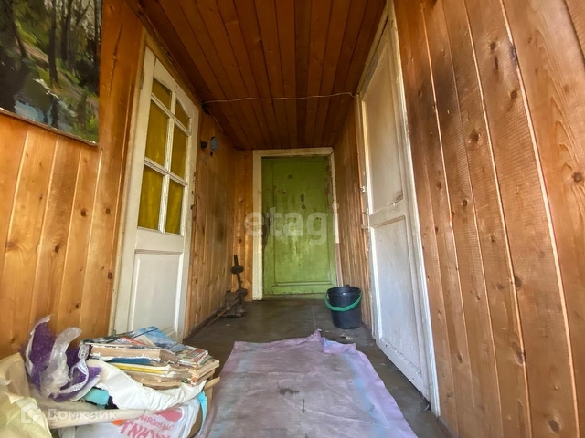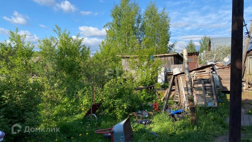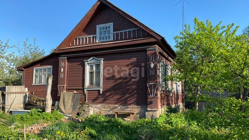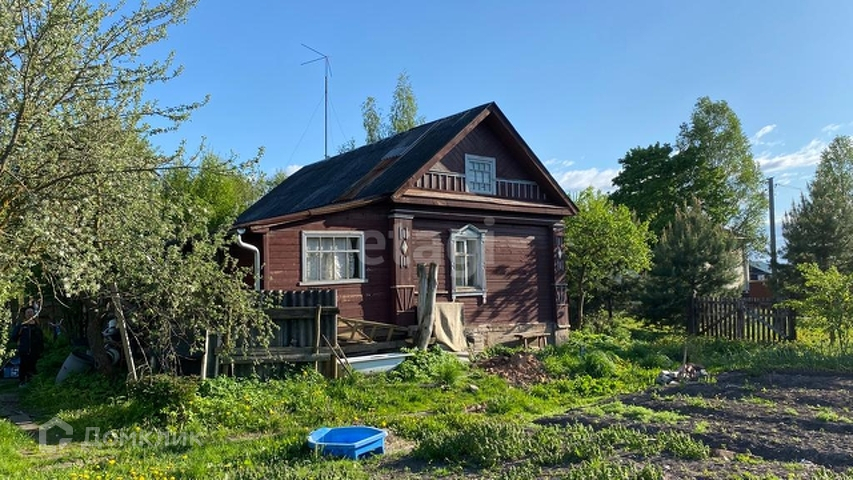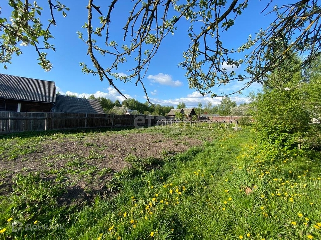 Дом бревенчатый, обшит доской. В нём две большие комнаты: кухня и жилая. Есть терраса. Есть электричество и центральный водопровод. Дом крепкий, но требует ремонта. Земельный участок разработан, есть посадки и плодовые деревья.