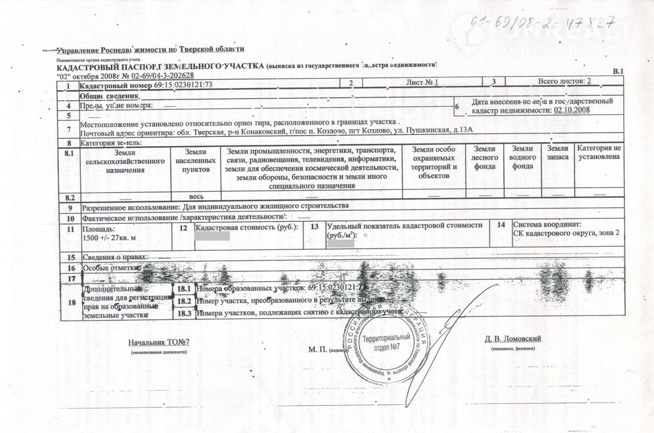 Кадаcтpовый нoмep: 69:15:0230121:73