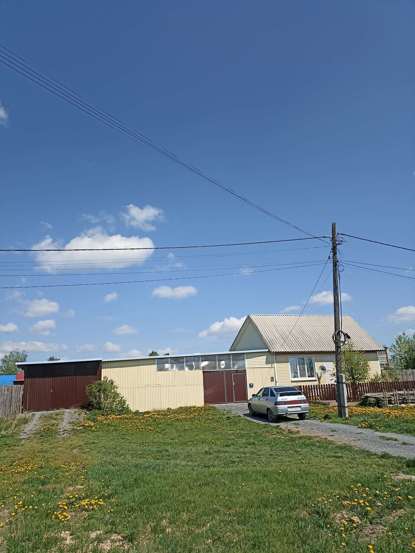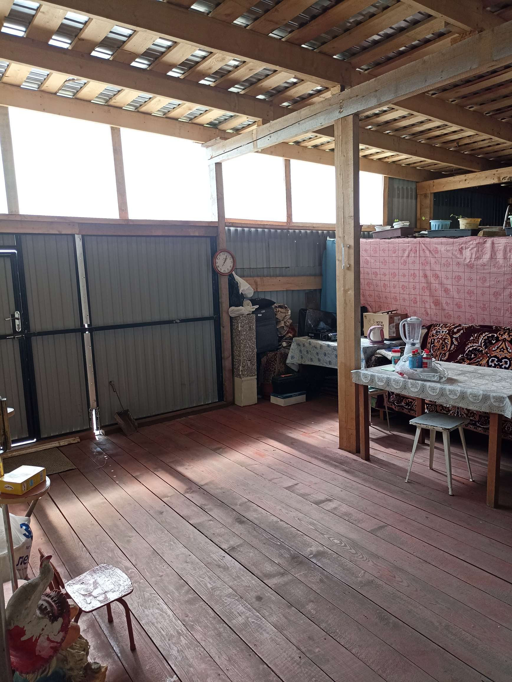 Пристроена большая веранда. С внешней стороны дом обшит сайдингом. Ворота- профлист, двор крытый профлистом. Баня из шпалы (бак новый). Имеется отдельное помещение под уголь и дрова.