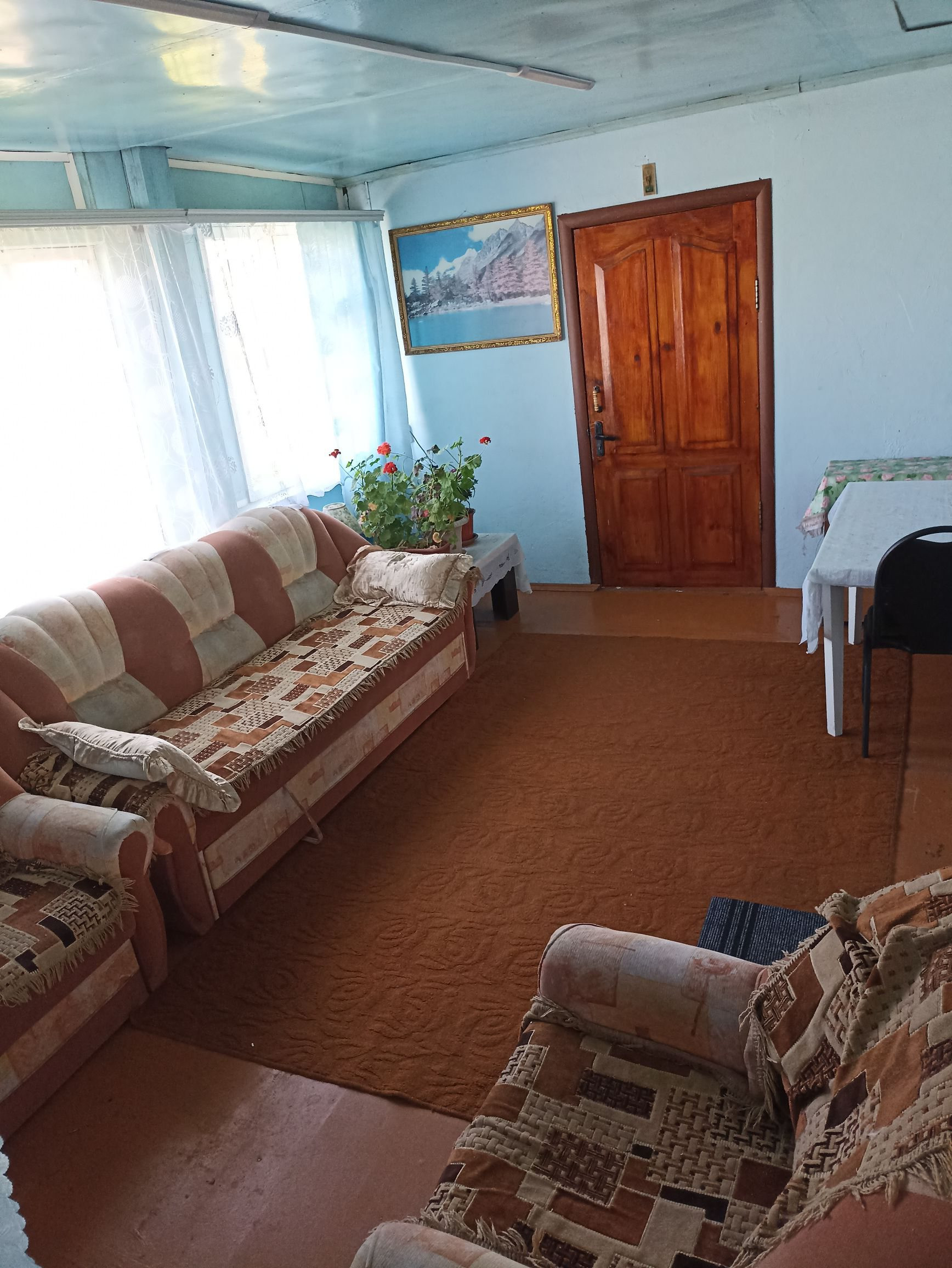 В доме окна пластиковые, внутри стены оштукатурены (под покраску). Солнечная, светлая сторона. Паровое отопление от печи. Централизованное холодное водоснабжение, горячая вода от бойлера. Слив-септик. Туалет в доме.