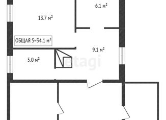 Общая площадь: 34.1 м2