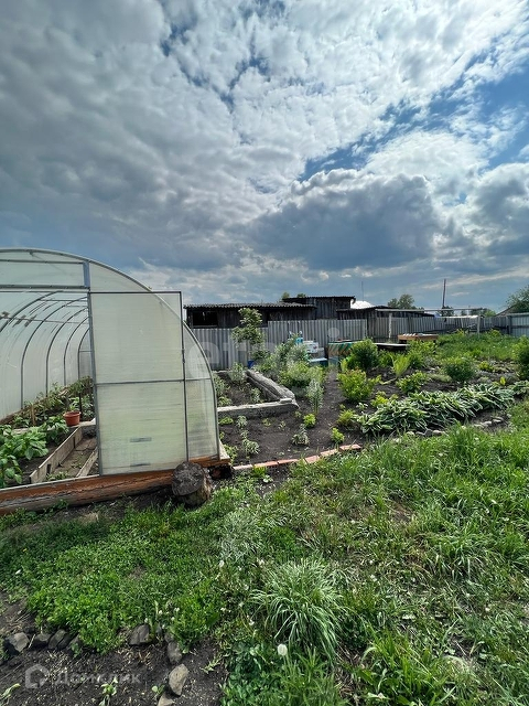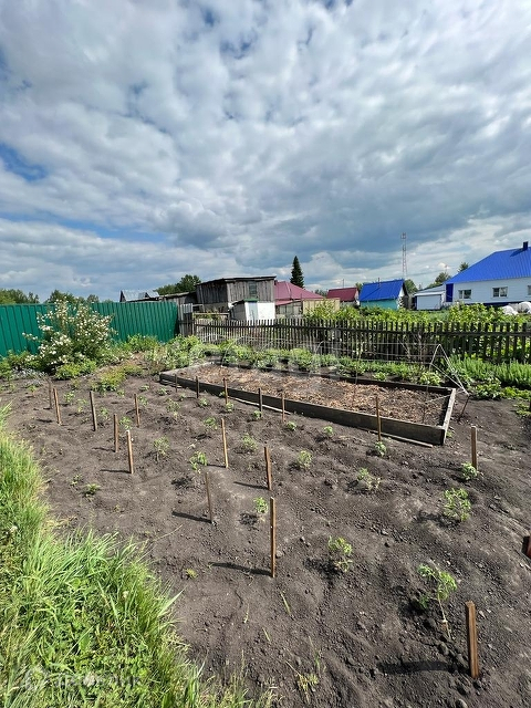 Ухоженный огород, теплицы, забор из профлиста.