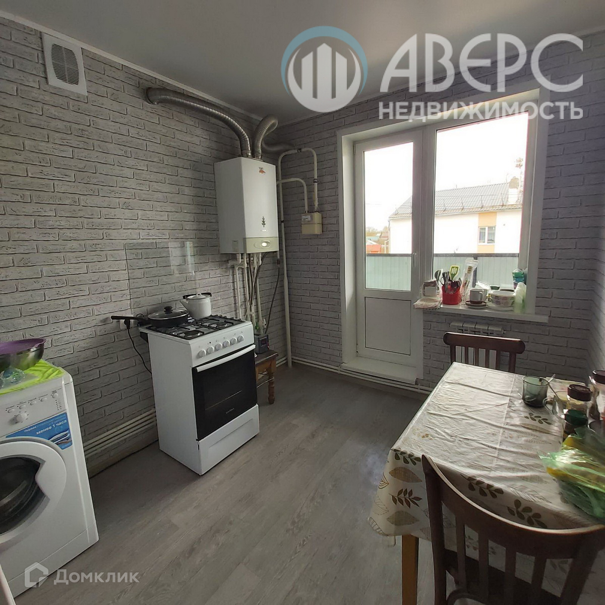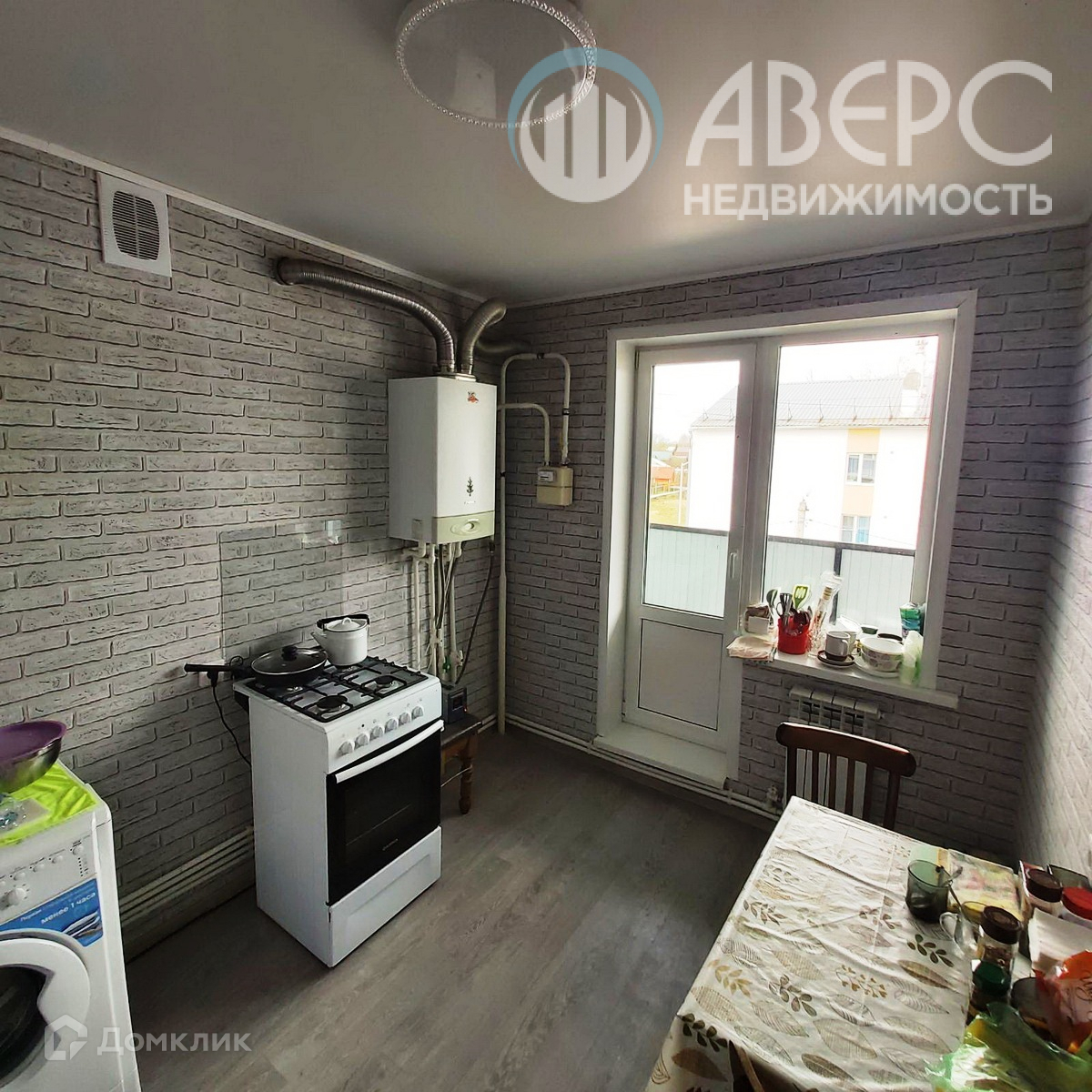 Комната прямоугольная, окно ПВХ.  Кухня большая, с выходом на балкон.