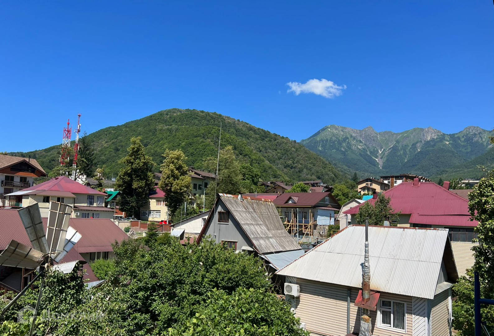 Хорошее расположение дома, в шаговой доступности расположены детский сад, больница, школа, футбольное поле, банковское и почтовое отделение, супермаркет, кафе и рестораны. У поселка Красная Поляна прекрасно развита инфраструктура, так что не нужно никуда ехать. До горнолыжных трасс, аквапарков, катков, казино, ресторанов и других развлекательных объектов курорта на автомобиле или автобусе не более 5-7 минут.