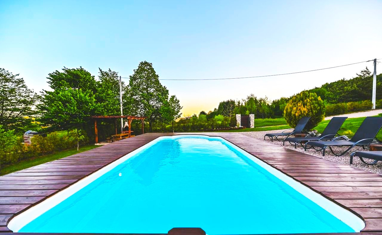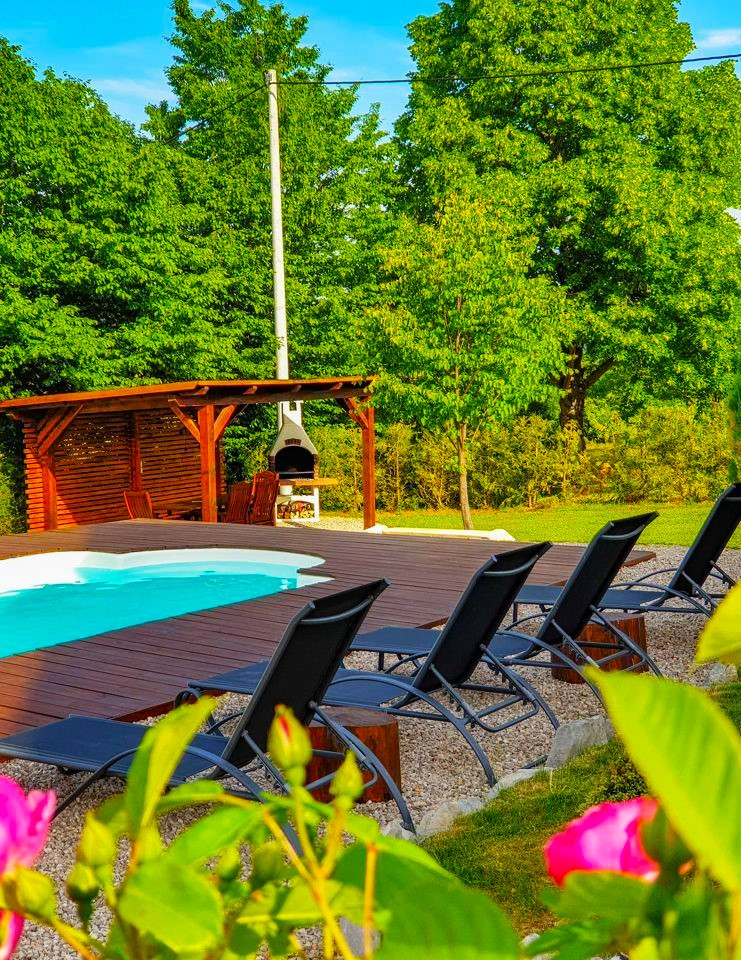 На территории кроме основного дома расположена баня, зона барбекю, гостевой паркинг, зоны отдыха, место для бассейна.
