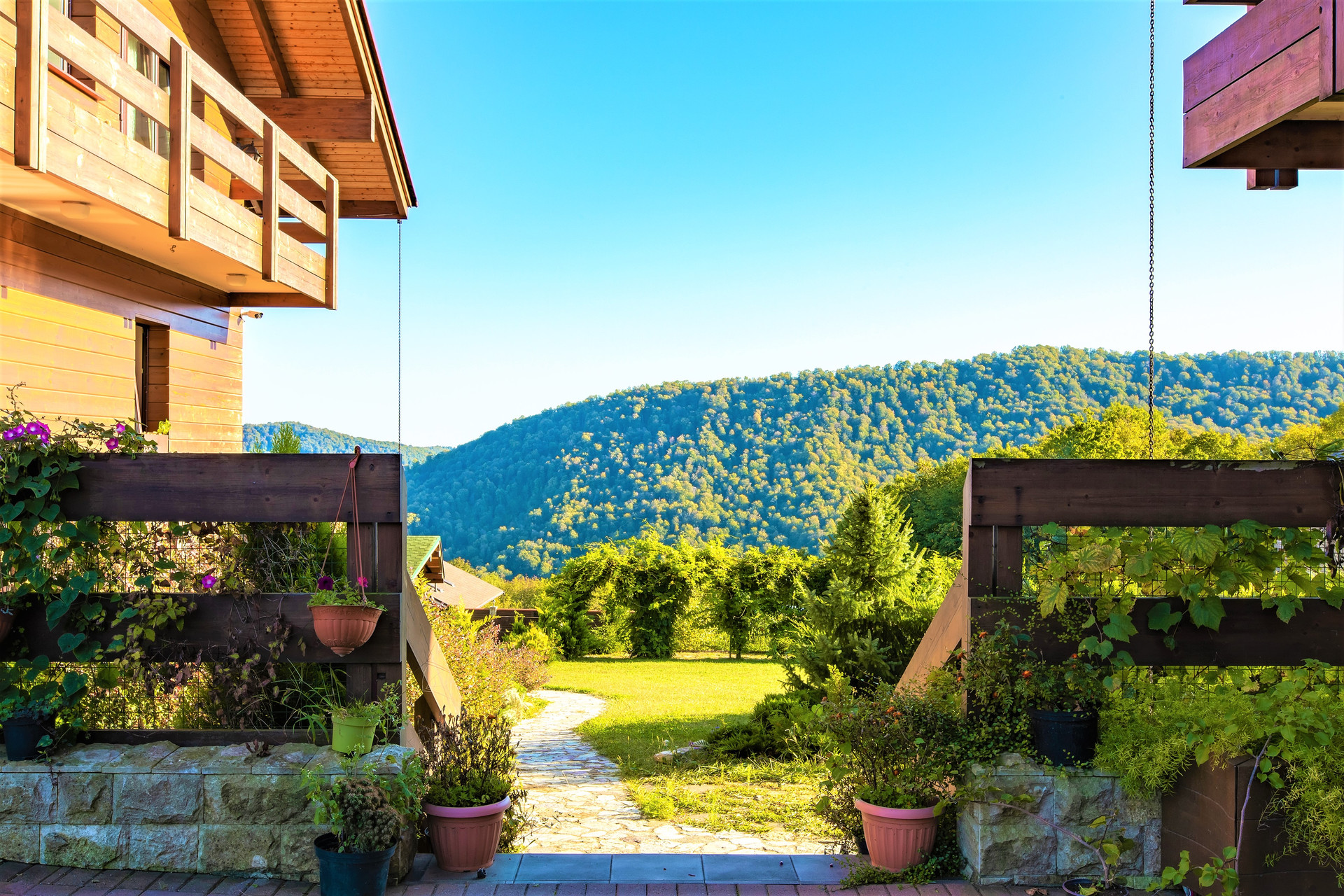 3 этаж - состоит из трех спален, каждая из которых имеет отдельный санузел, из спален есть выход на балкон. Гараж на три автомобиля. Над гаражом расположен гостевой дом состоящий из двух спален с отдельными санузлами, гостиной-кухни, прихожей, большой открытой террасой с безумно красивым видом на горы.
