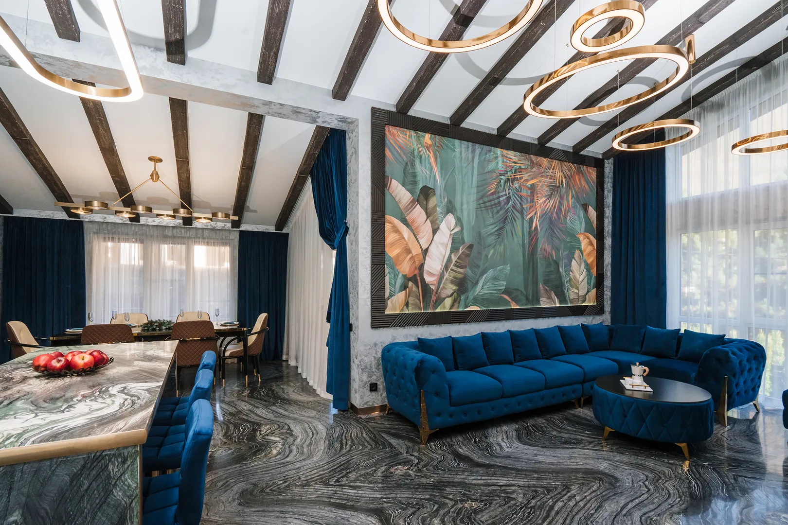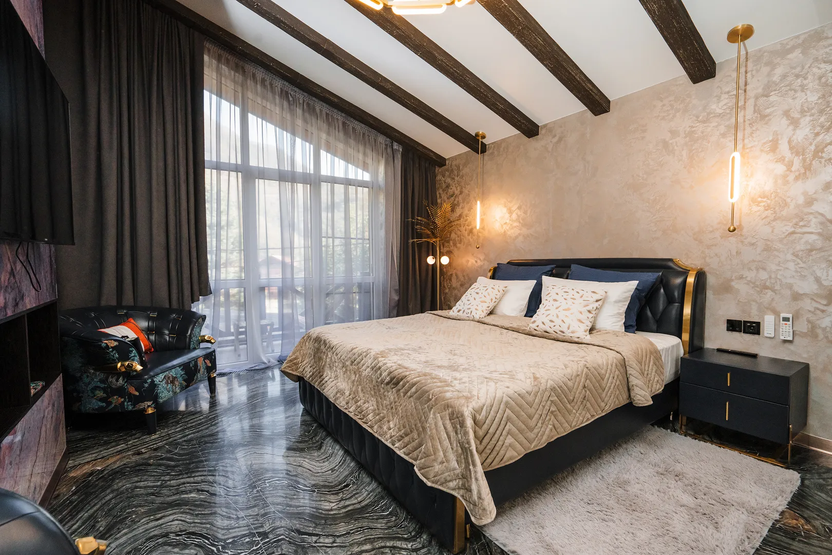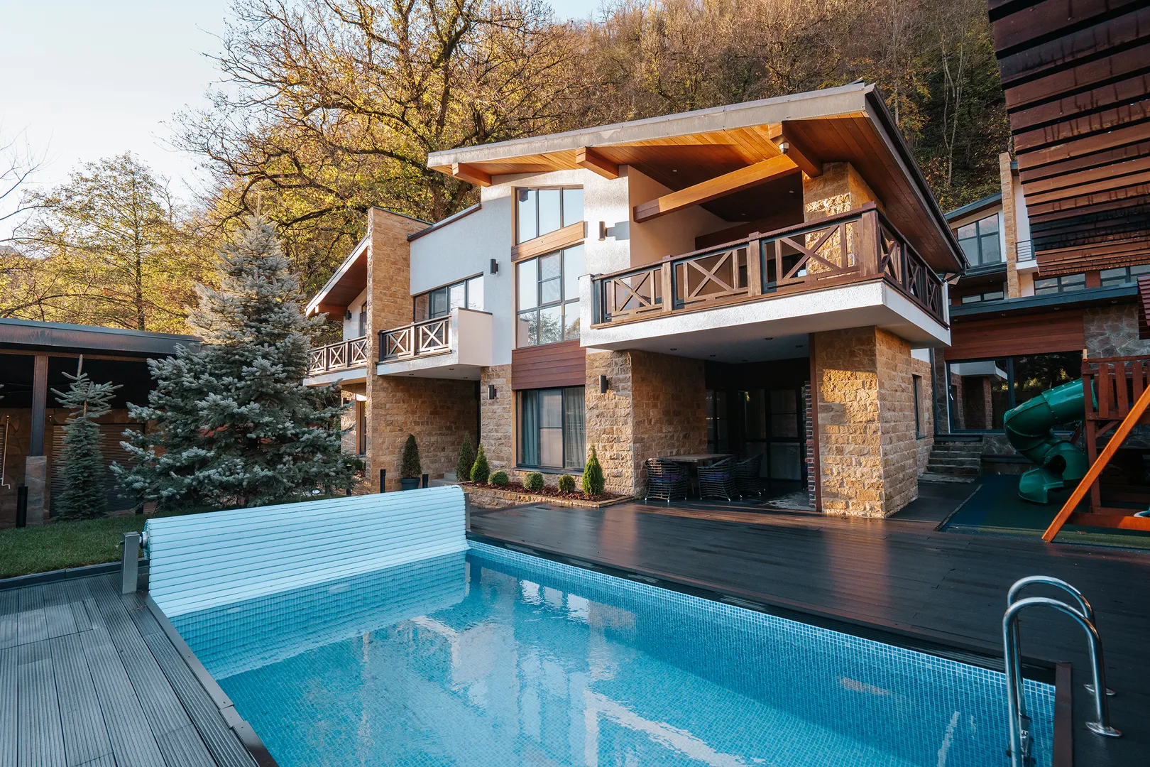 Великолепный дом в стиле шале общей площадью 250 м2. Невероятное пространство с дизайнерским подходом к каждой детали. Использованы натуральные материалы – дерево, камень, кожа, изделия ручной работы. С порога попадаешь в атмосферу роскоши и комфорта.