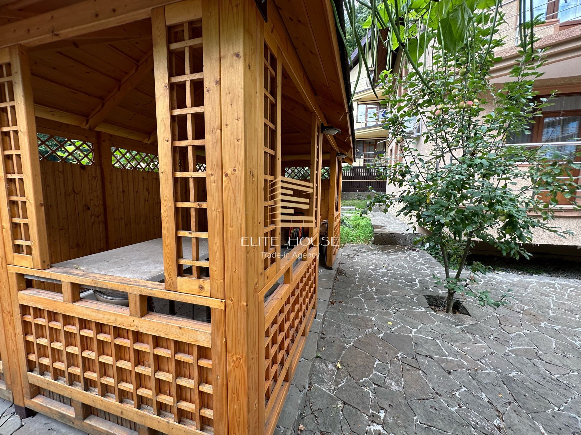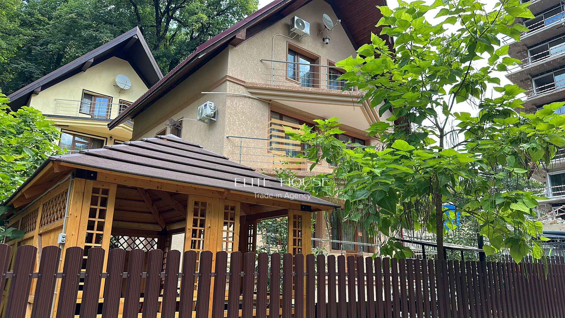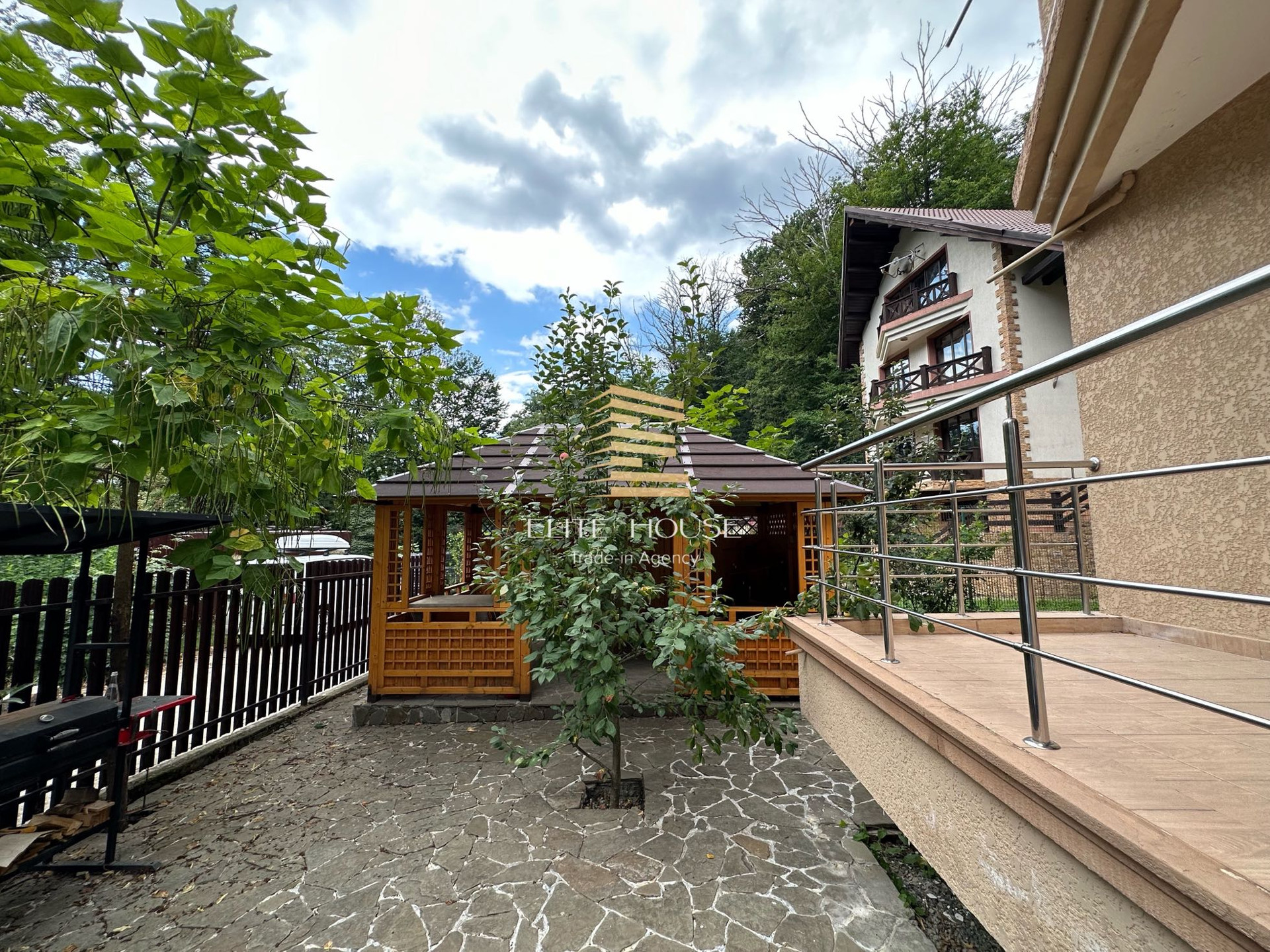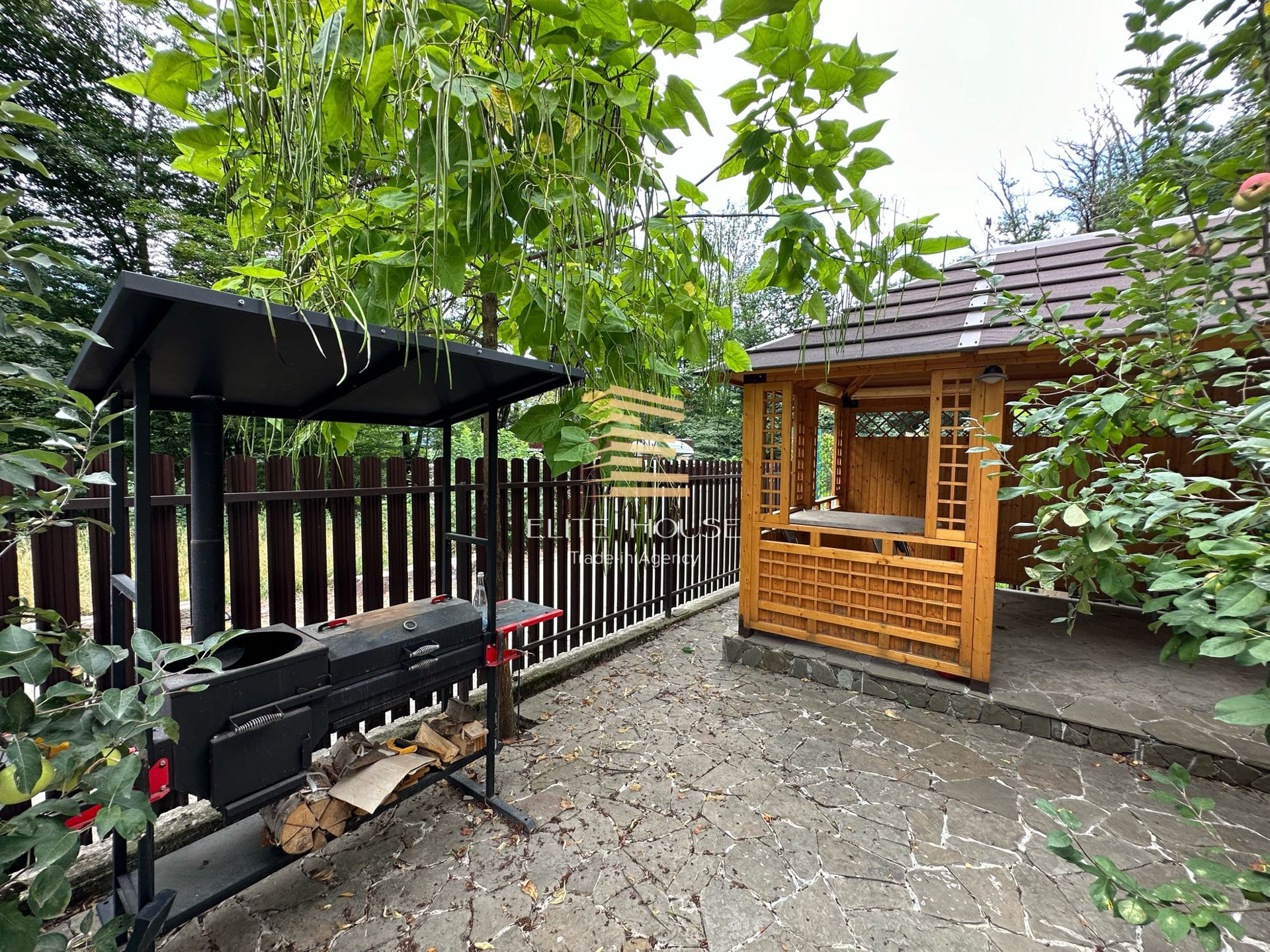 Своя зона Барбекю и Беседкой. Три сан узла, на каждом этаже, по одному.