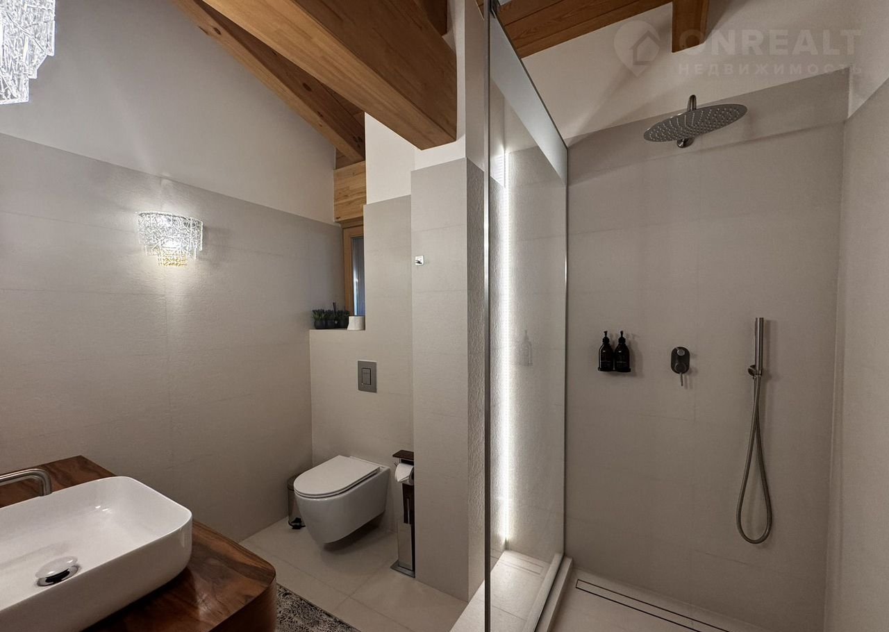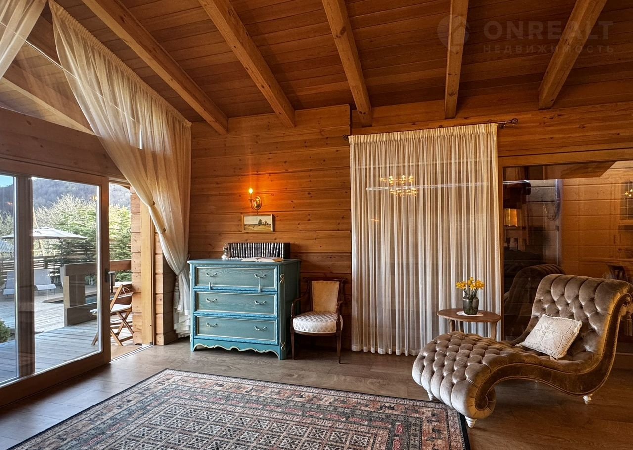 Банный комплекс: 2 этажа, на первом-сауна, санузел, летняя кухня, выход на террасу и бассейн (круглогодичный подогреваемый),и все это с панорамным видом на горы! На втором-санузел и гостевая комната!