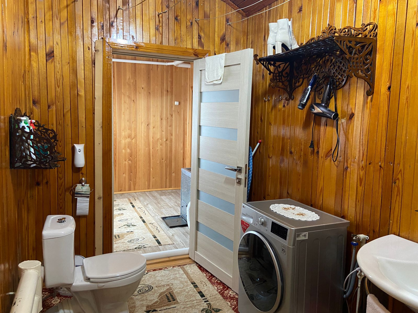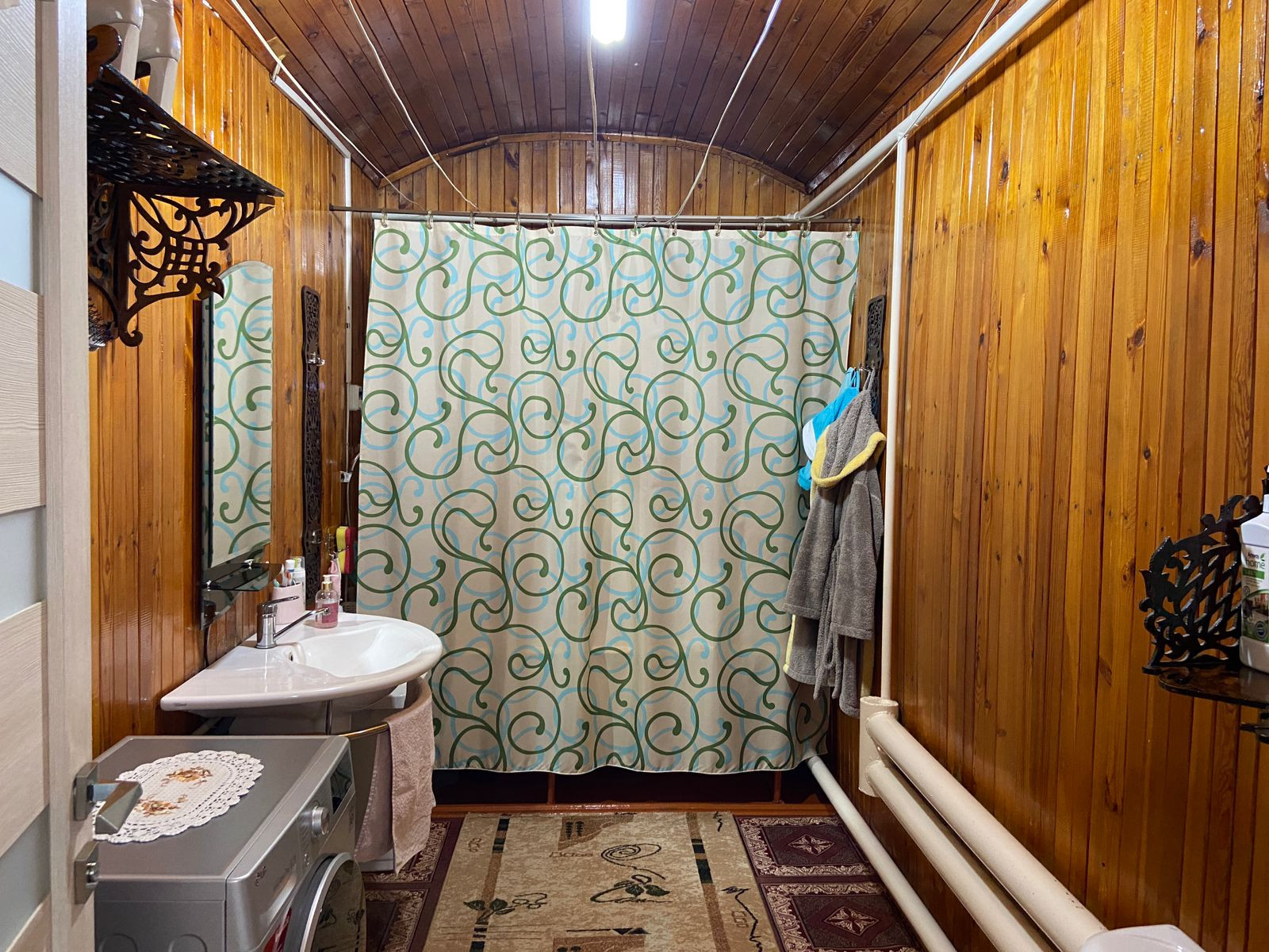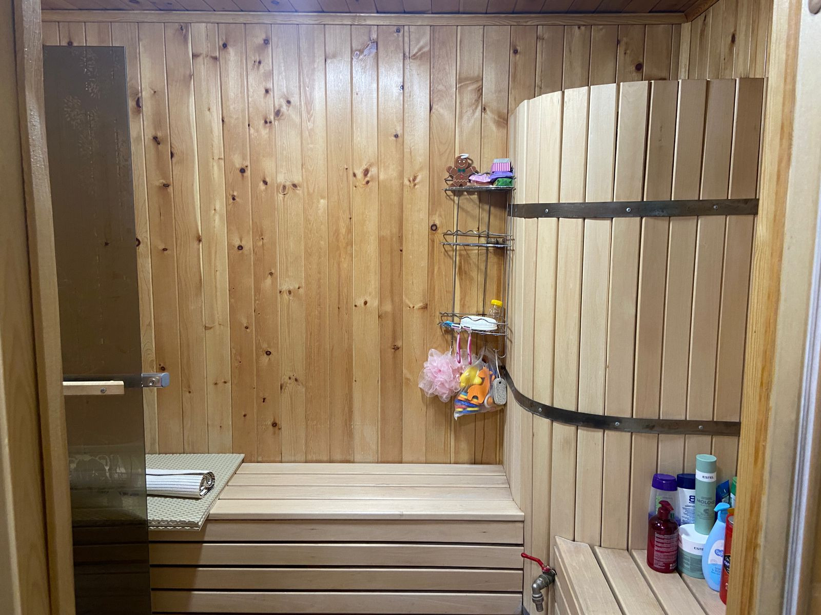 Дом из бруса, обшит блок-хаусом, крыша перекрыта металлочерепицей, отопление водяное - котел, канализация-септик, водоснабжение - колодец, колодец сделан прям под домом, установлена станция, разводка по по дому холодной и горячей (бойлер) воды. Дом состоит из трех спален (9м2, 9м2, 18м2) гостиная (36м2), кухня (21м2), прихожая (14м2), котельная (7м2), санузел (7,6м2). На территории участка расположены: два гаража 5*8 и 5.4*6, углярка/дровник 5.40*3, баня/сауна 6*3.5 (сауна обшита липой, мойка - кедром, раздевалка - сосной).