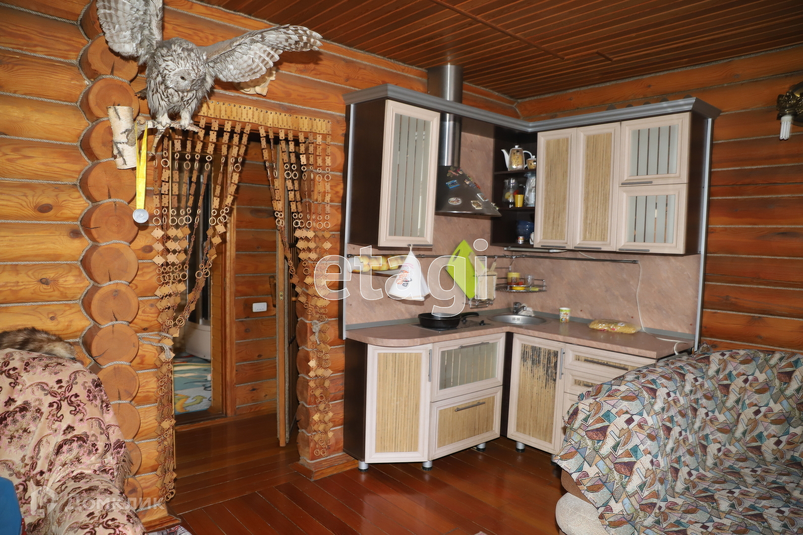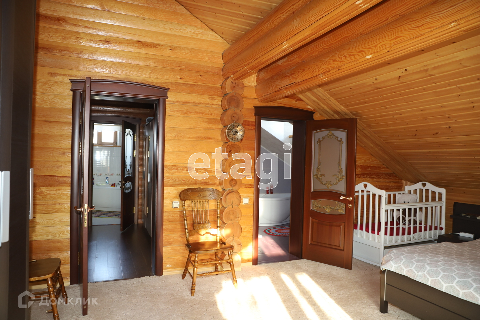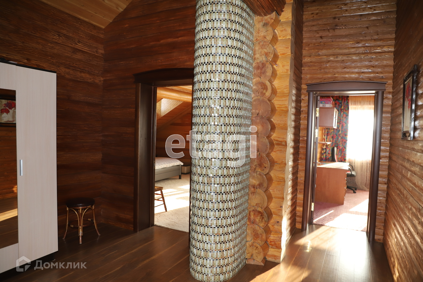 Продается дом в превосходном состоянии. Дом делался с душой. Сделан из круглого бруса. Первый этаж сделан в виде студии на котором находится кухня и зона отдыха. Стоит камин из камня, который был привезен под заказ, а рядом стоит мягкий диван, на котором можно спокойно провести время. Стеклянная веранда и переход, который позволяет передвигаться прямо в сауну и бассейн. Отопление находится в герметичном подвале. Это буржуй на соляре, который экономичный. Также еще есть электрическое отопление. В подвале стоят 2 отстойника, которые фильтруют воду.