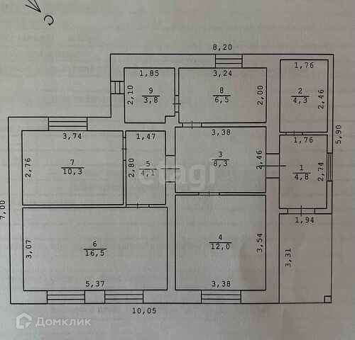 Дом общей площадью 76.8 м2 расположен на земельном участке площадью 3,7 соток.