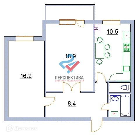 Жилая площадь 35.1 м2