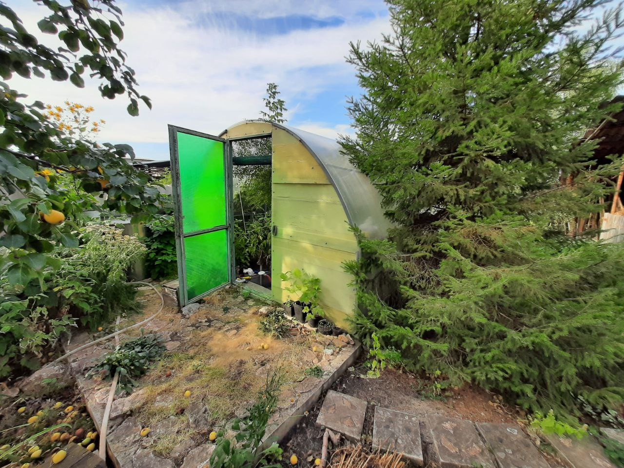 На участке в 13 соток расположены теплица, баня, хоз. постройки. Высажены многолетние плодоносящие деревья и кустарники: яблони, груши, вишни, смородина, слива, малина, виноград, крыжовник и другие. В саду множество цветов и декоративных растений.  Гараж со смотровой ямой соединен с домом. Хорошие соседи. В доме остается большая часть мебели -заезжай и живи.