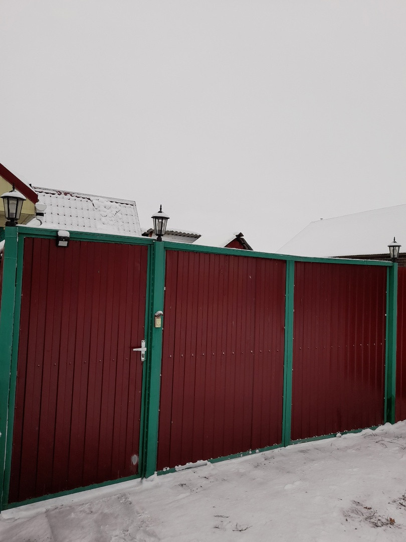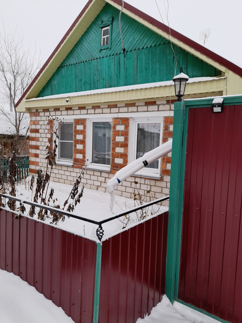 Дом сухой,теплый,из бруса,обложен кирпичом.Крыша новая от стропил до кровли.Есть снего-удержатели.Новые ворота,с фонарями.