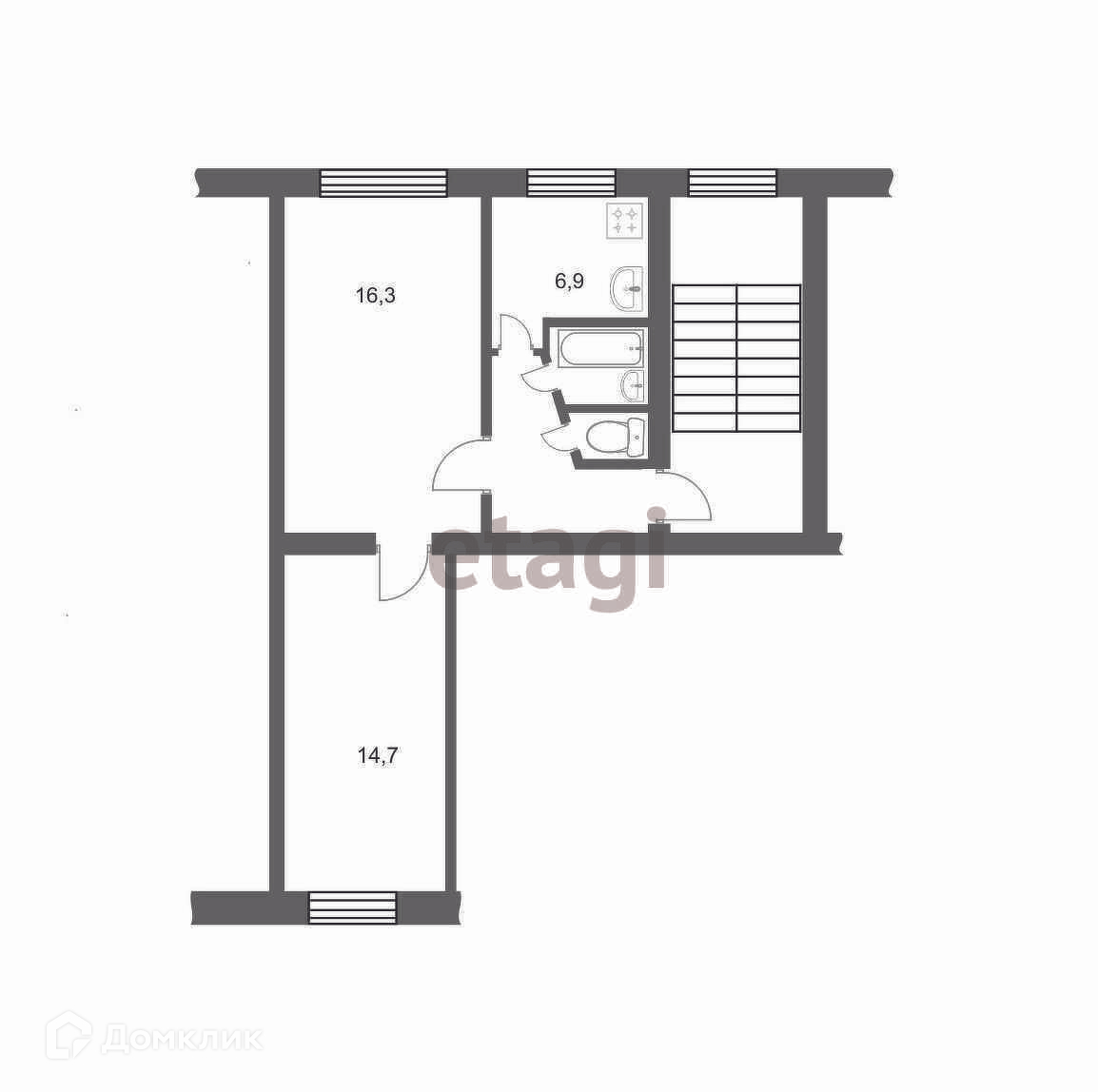 Общая площадь 44.5 м2