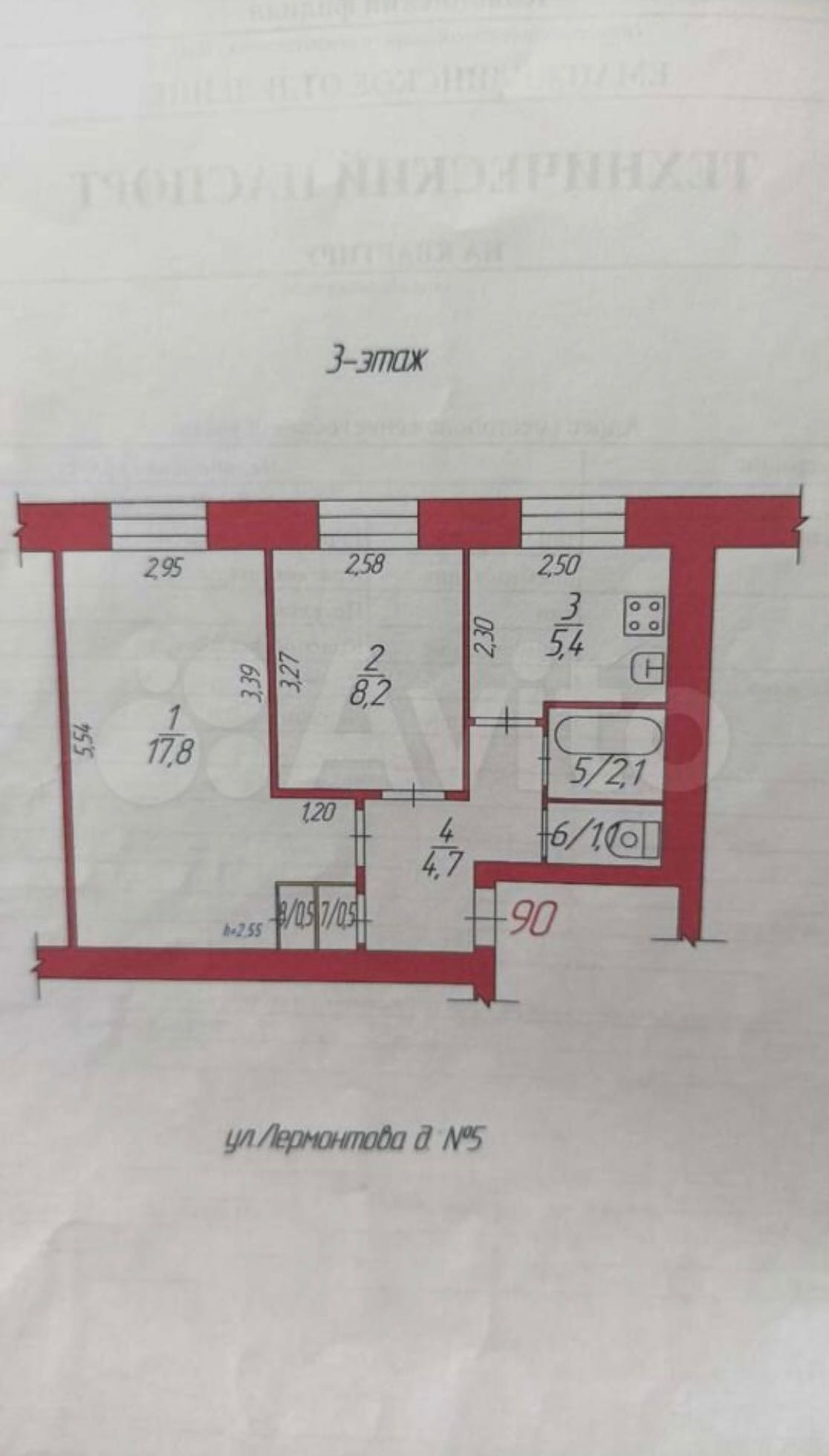 2-комнатная квартира, 40.3 м2, этаж 3 / 5, на продажу в посёлке городского типа Красногорский, улица Лермонтова, 5