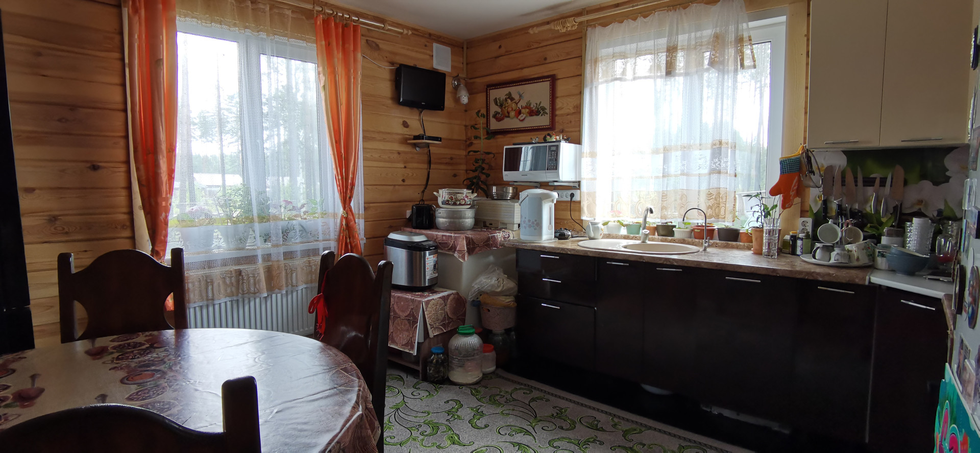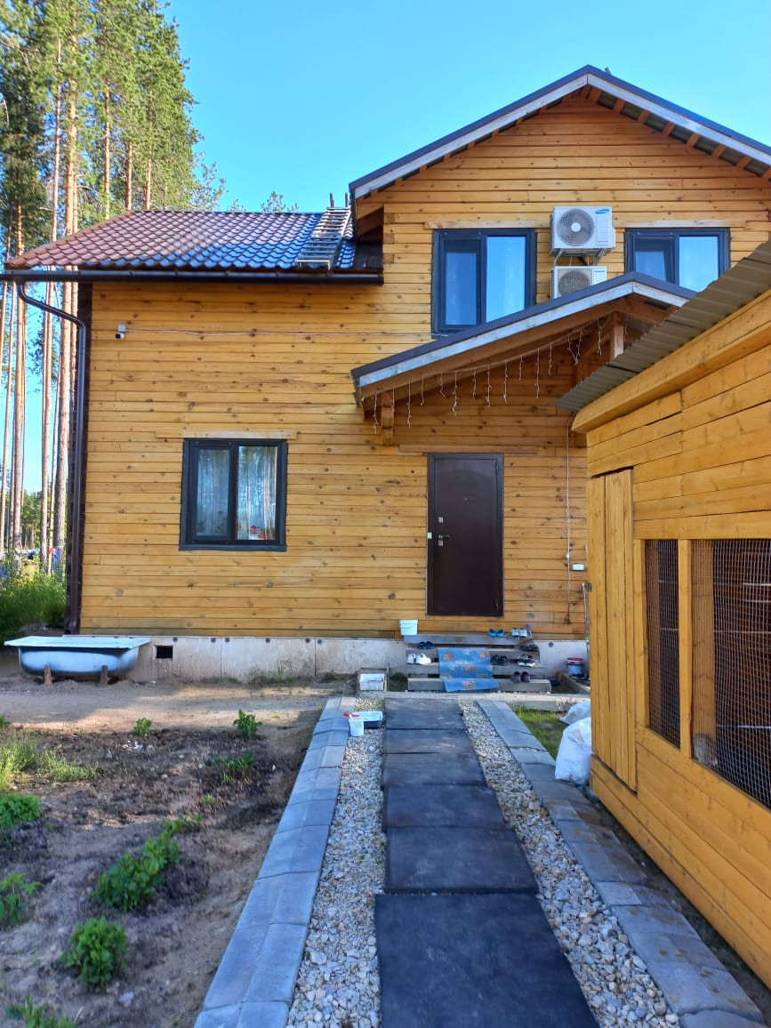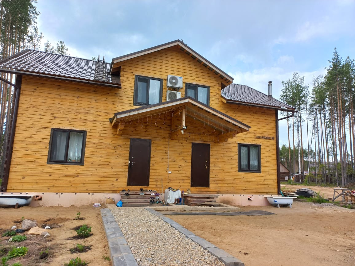 Предлагаем к приобретению коттедж, расположенный в пос. "Сосновая поляна". 17я линия, первая от города. Дом построен из профилированного бруса. Фундамент-бетонные сваи. Два этажа. Два отдельных входа, можно проживать двум семьям, обособленно друг от друга. Общая площадь дома по документам 175 кв.м., фактически 195 кв.м. Вода из скважины, чистая, питьевая. Канализация-септик. Отопление и горячая вода от газового котла (в процессе подключения), также имеется альтернативный котел, работающий на пеллетах и дровах. Планировку можете увидеть в фото объекта. Установлены кондиционеры, видеонаблюдение. Участок 10,4 сотки. На участке баня, хозпостройки, посадки, теплицы. Просмотры в любое, удобное вам время.