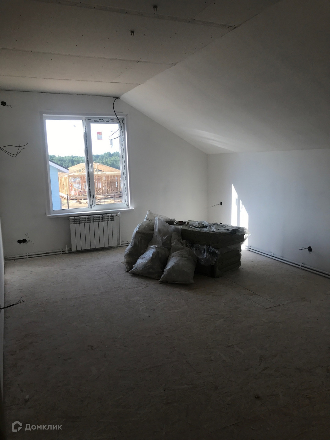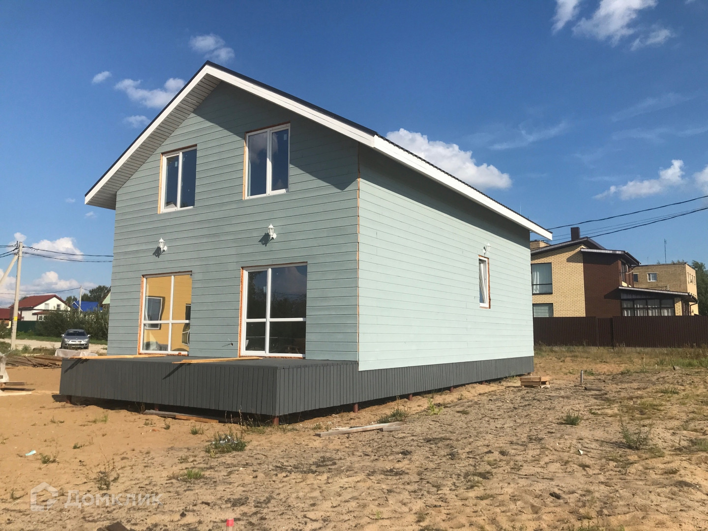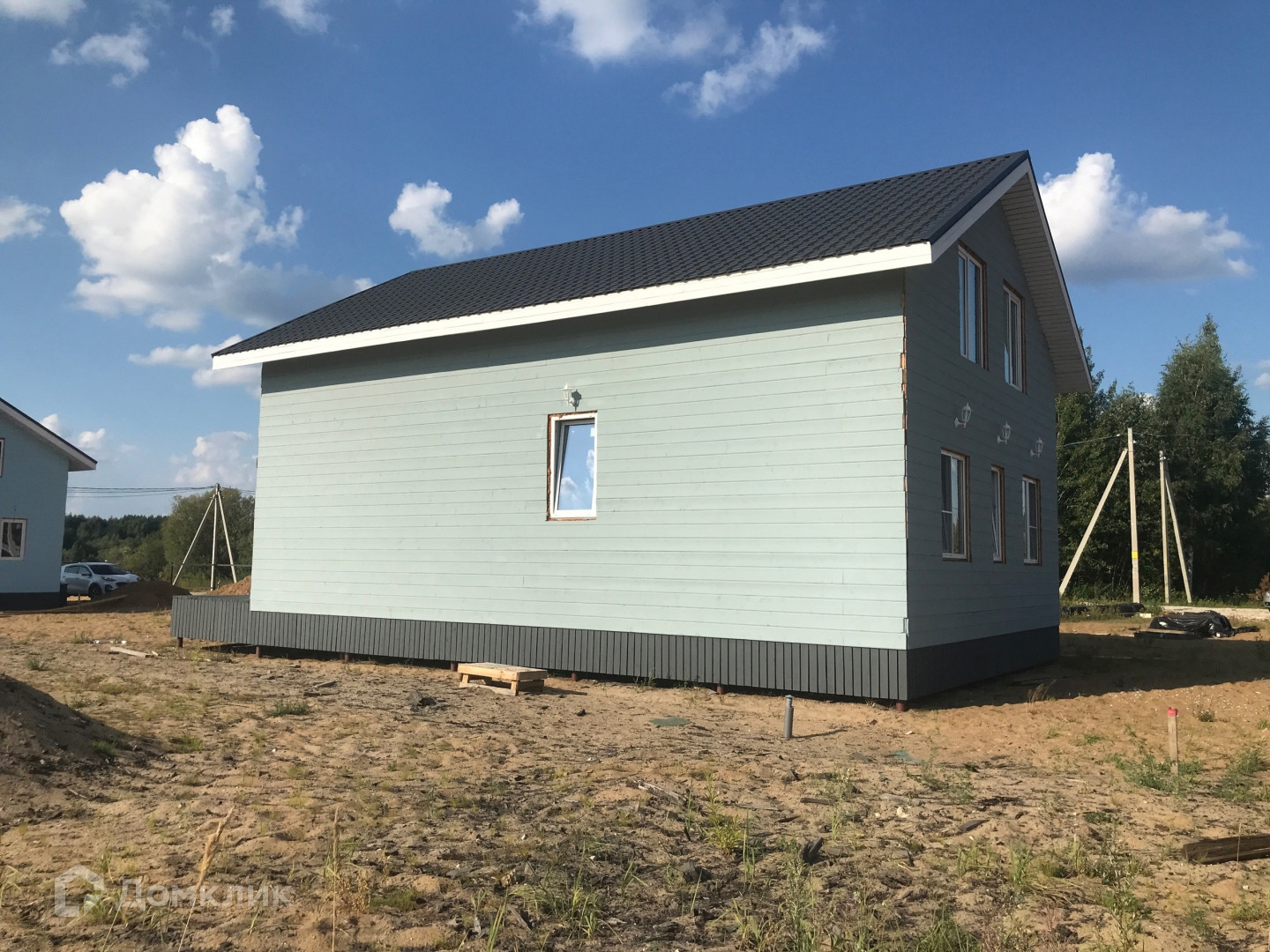 Дом построен в 2023 году по технологии каркасного строения, фундамент сваи (40 шт), крыше утеплена и застелена металлочерепицей.