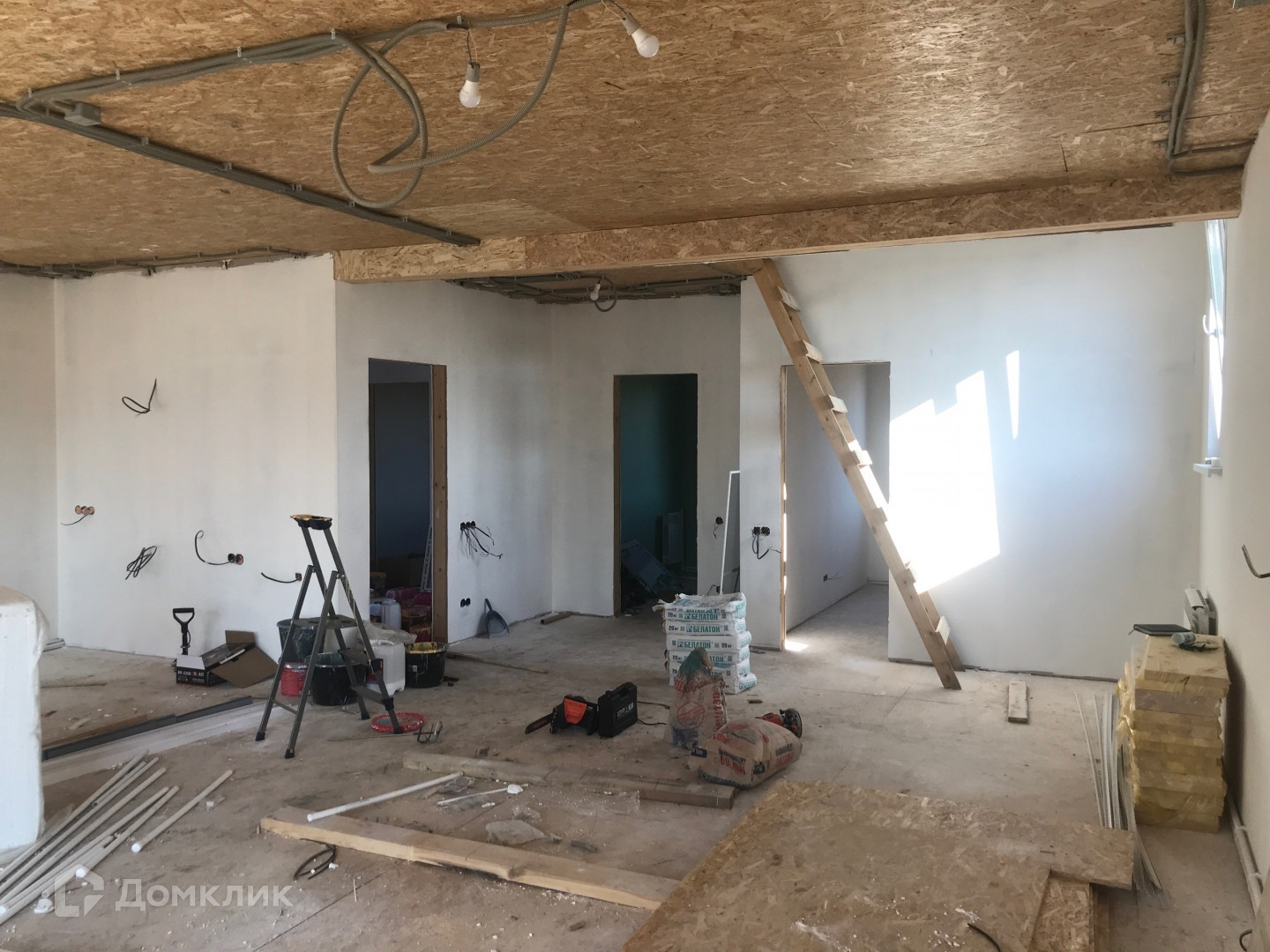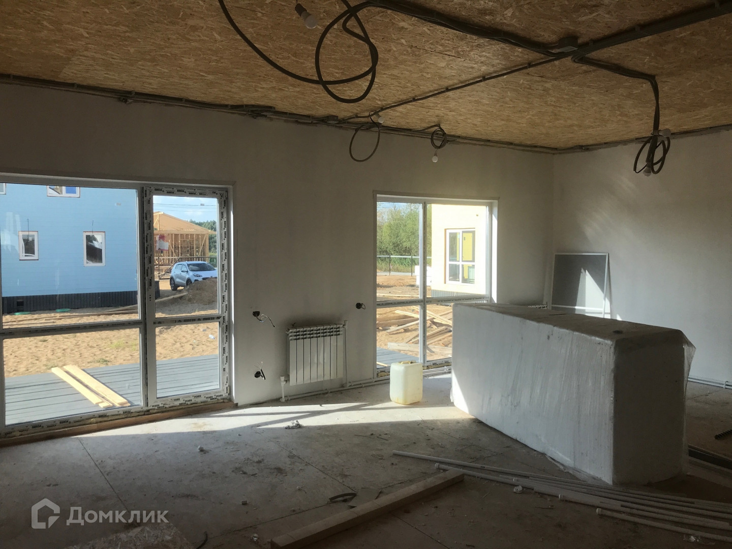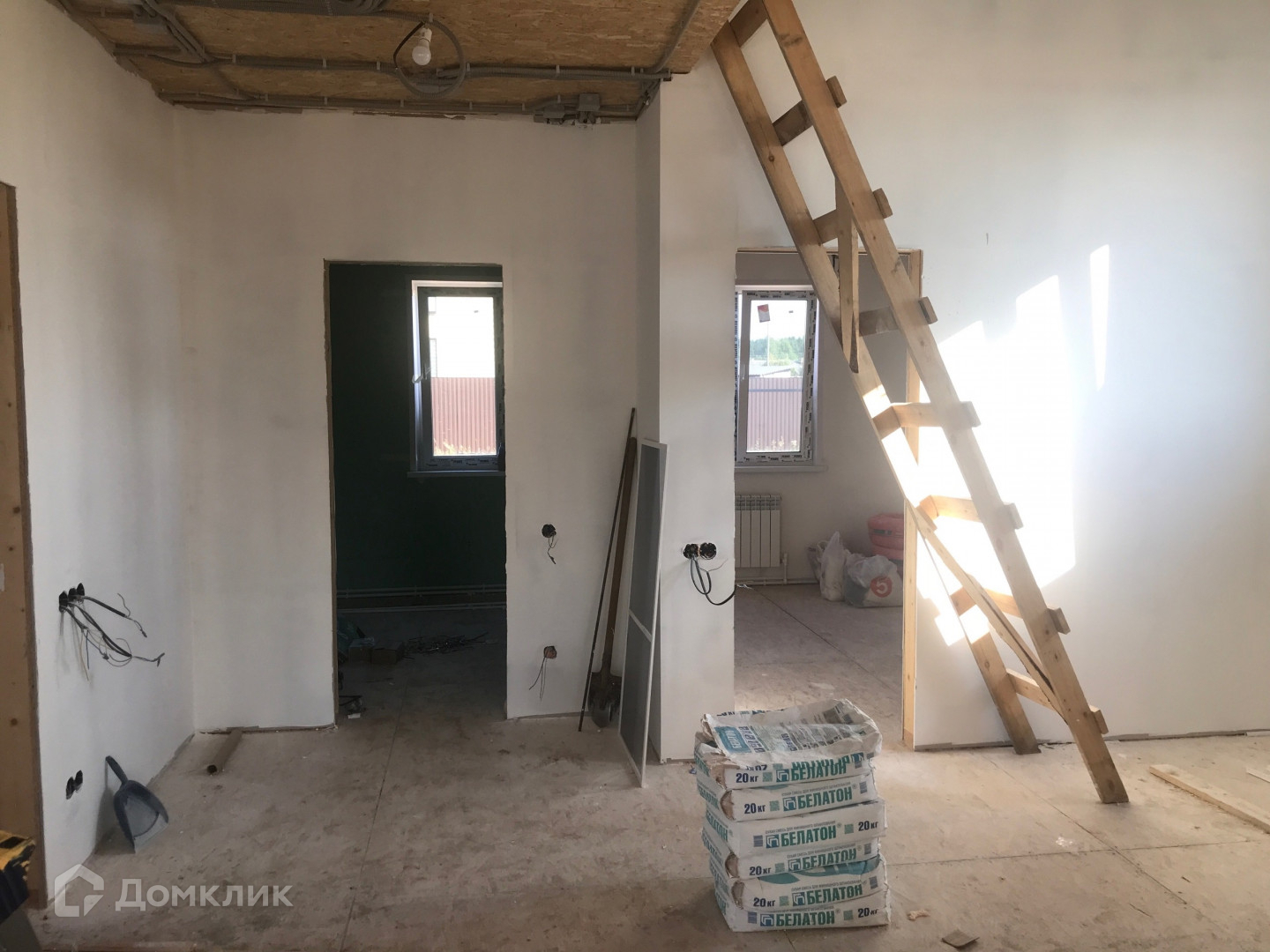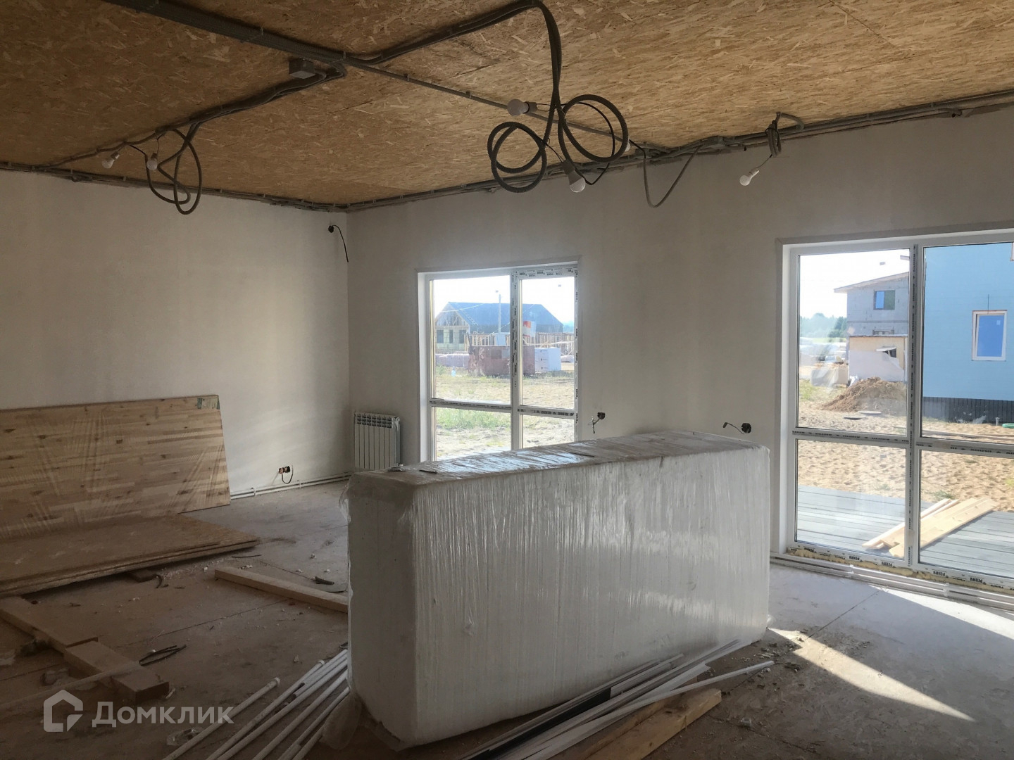 Дом построен в 2023 году по технологии каркасного строения, фундамент сваи (40 шт), крыше утеплена и застелена металлочерепицей.