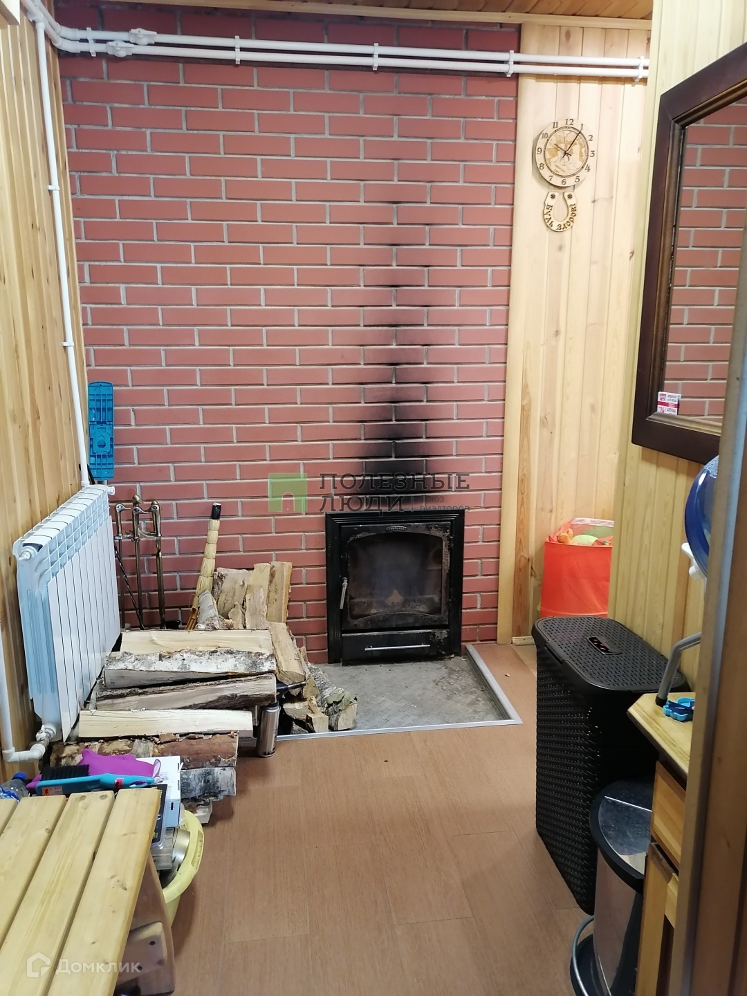 В бане полы из керамогранита с регулируемым обогревом. Вода – отдельная для бани скважина (вода питьевая), имеется электро нагреватель для горячей воды. Радиаторы отопления функционируют за счёт газового котла, + дровяная печь.