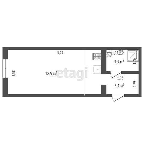Общая площадь 25.7 м2