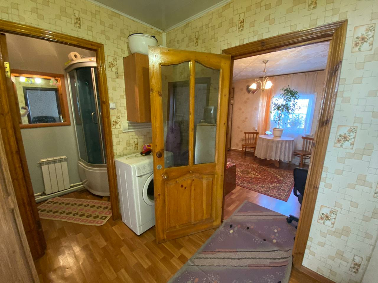 Дом представляет собой входную зону, просторную кухню, 2 спальни, совмещённый санузел (установлена душевая кабина и водонагреватель на 50 литров). Напольное покрытие -линолеум, потолок (высота 2.90см.) натяжной и декоративная плитка, окна пластиковые и деревянные, отопление индивидуальное (газовый котёл), установлены современные радиаторы, канализация индивидуальная.