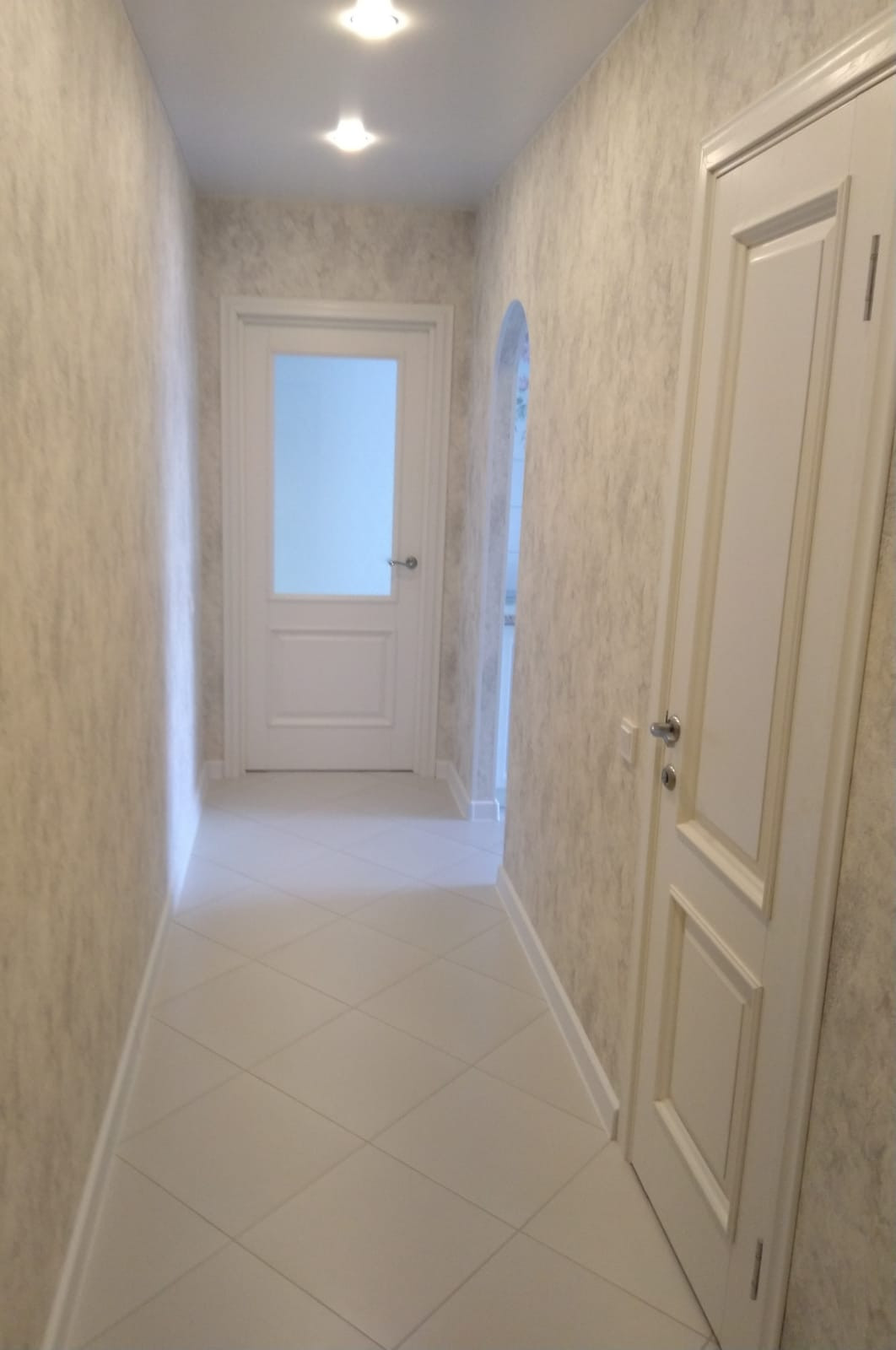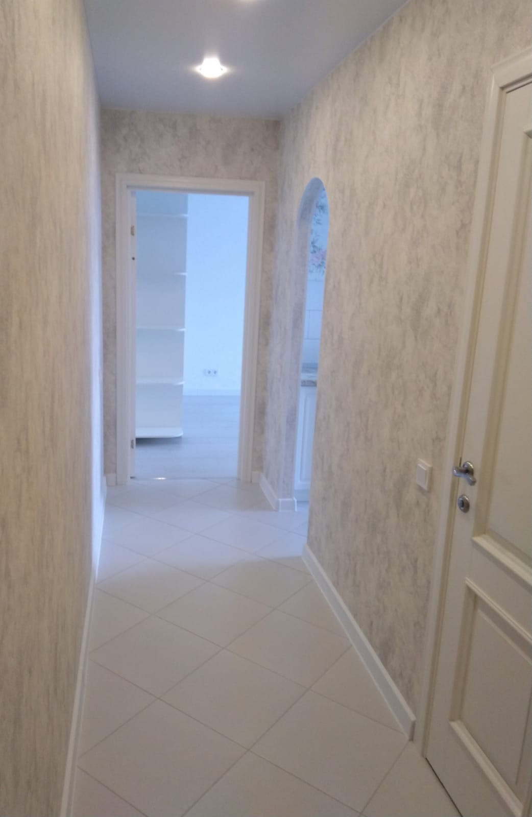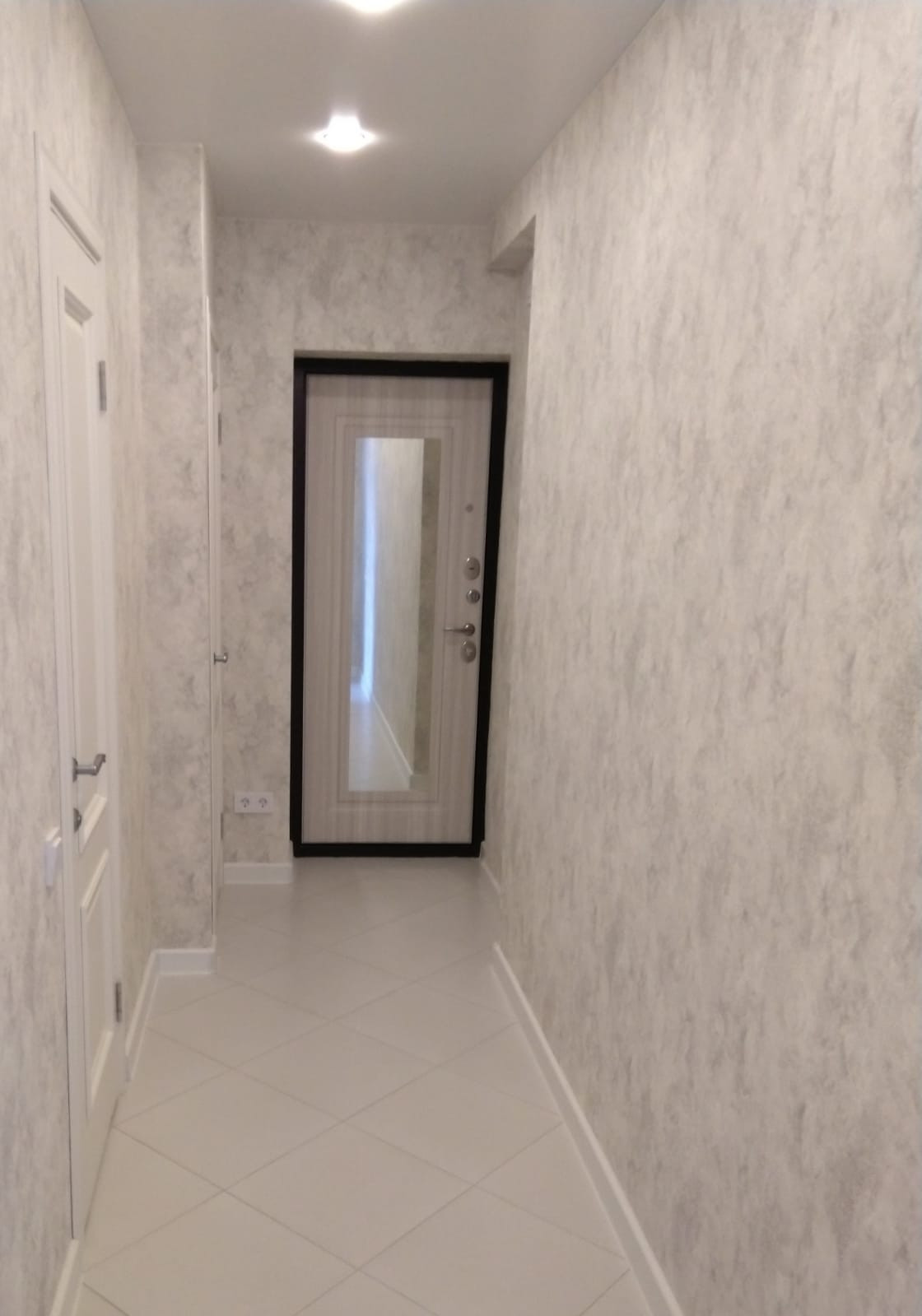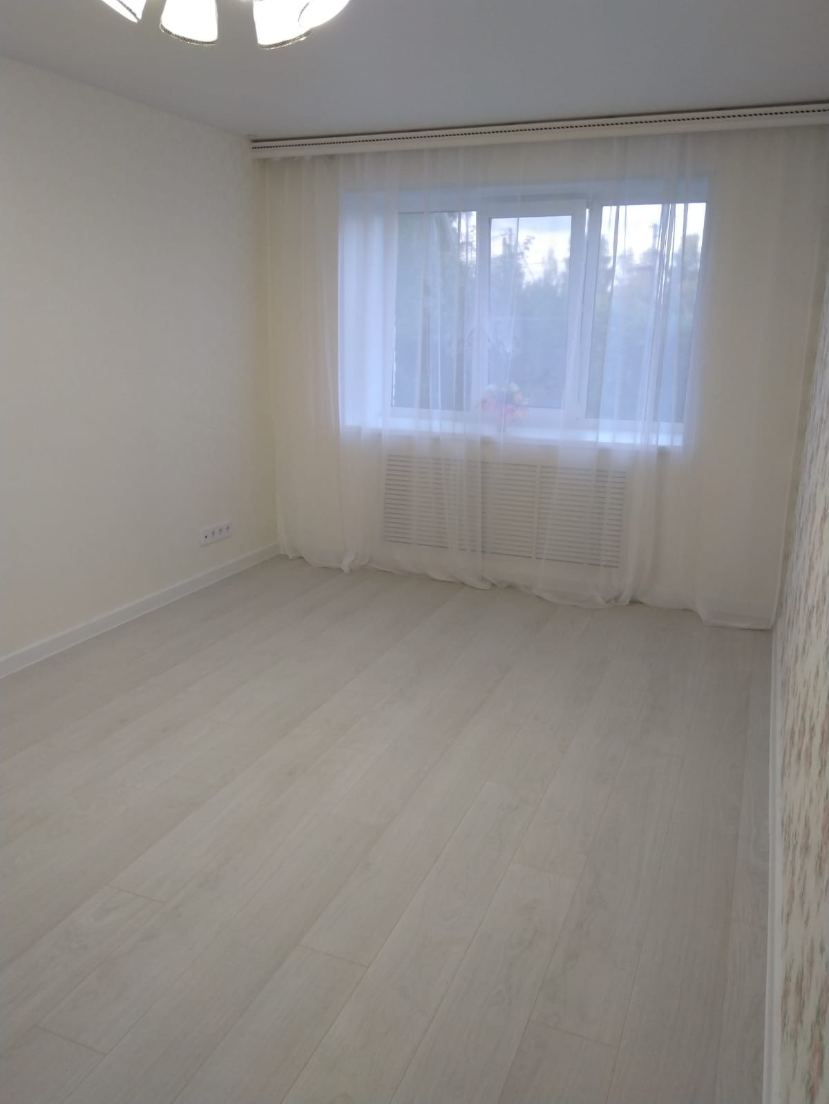 Отделка: на полу ванной комнаты, коридоре и кухне керамогранит.Кухонный фартук из плитки. В комнате- дорогой ламинат с фаской. Натяжные потолки во всей квартире "сатин". Встроенные диодные светильники и новая люстра. Входная дверь очень толстая и тяжелая, новая с зеркалом.